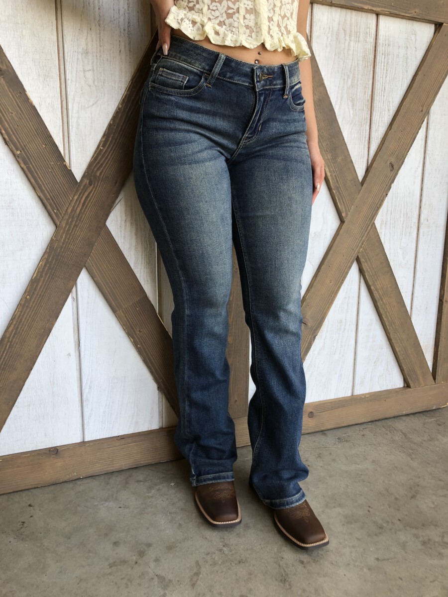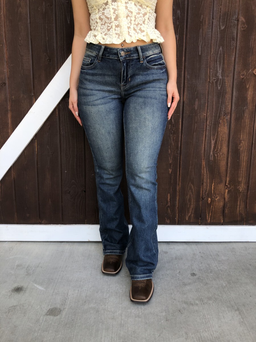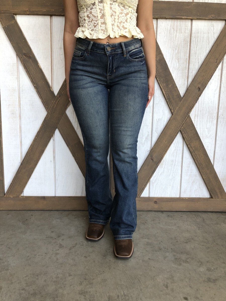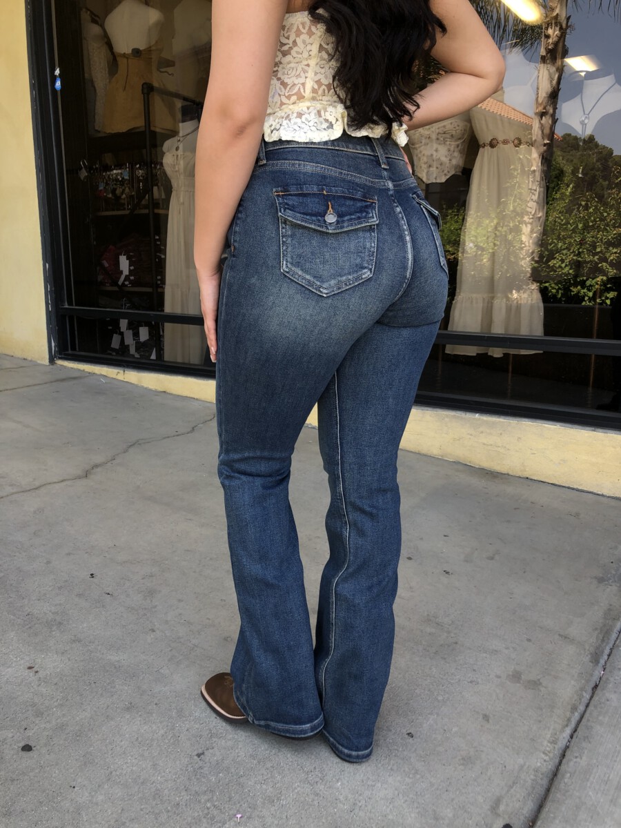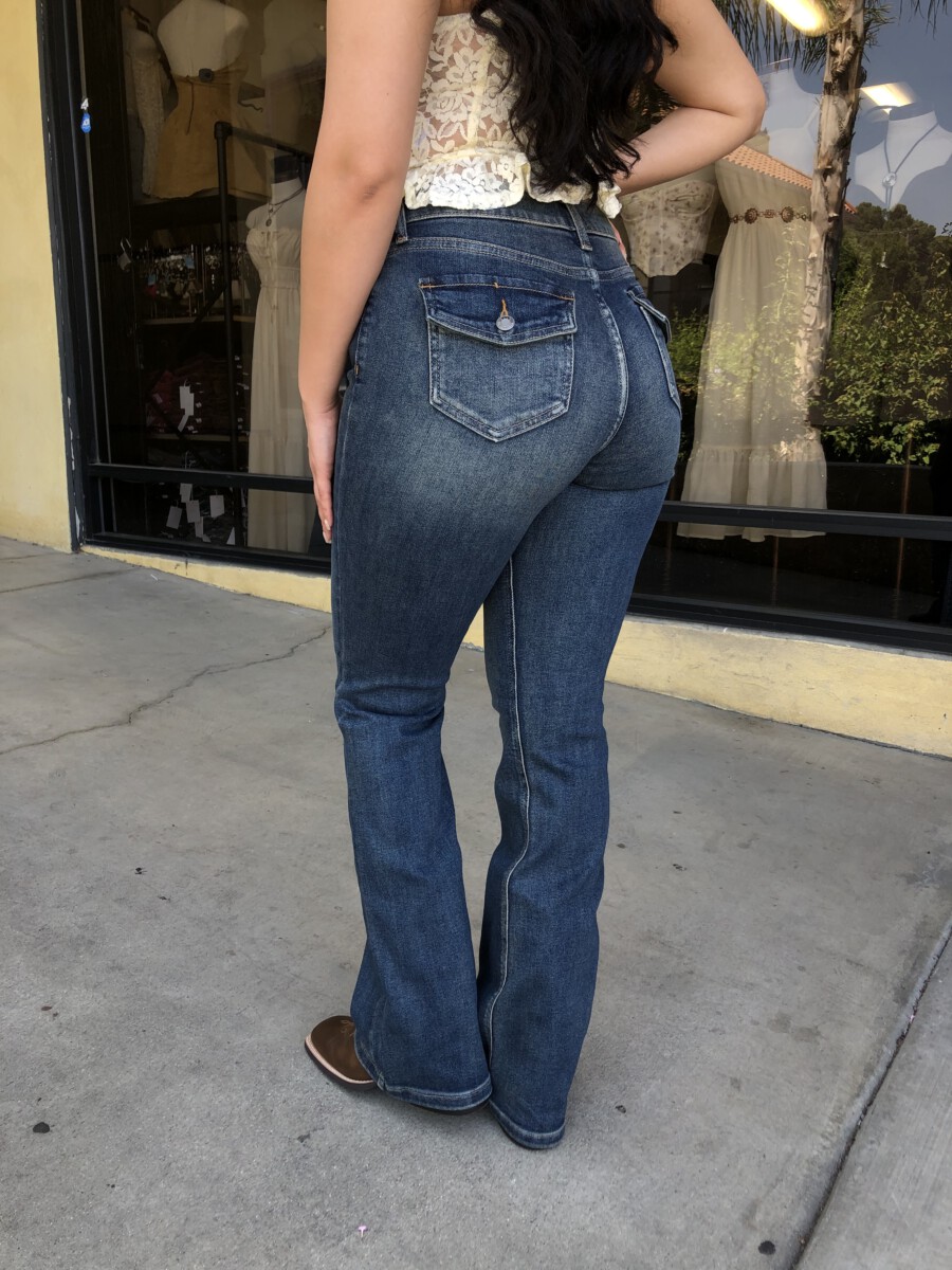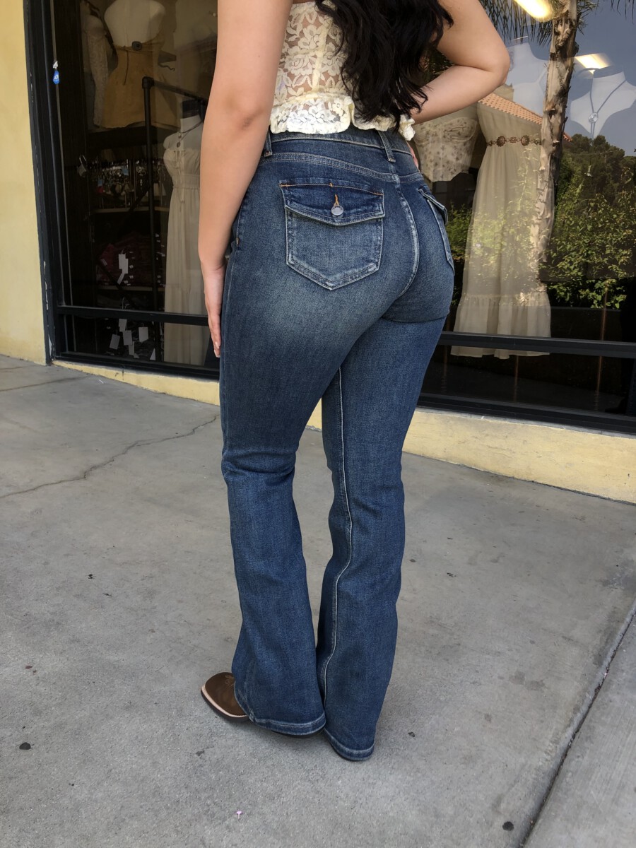 “Jianna” Mid Rise Bootcut With Flap Back Pockets Jeans ( Dark Tint )