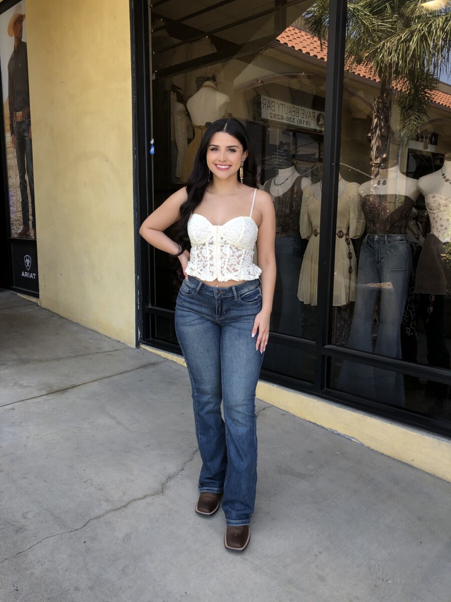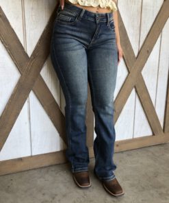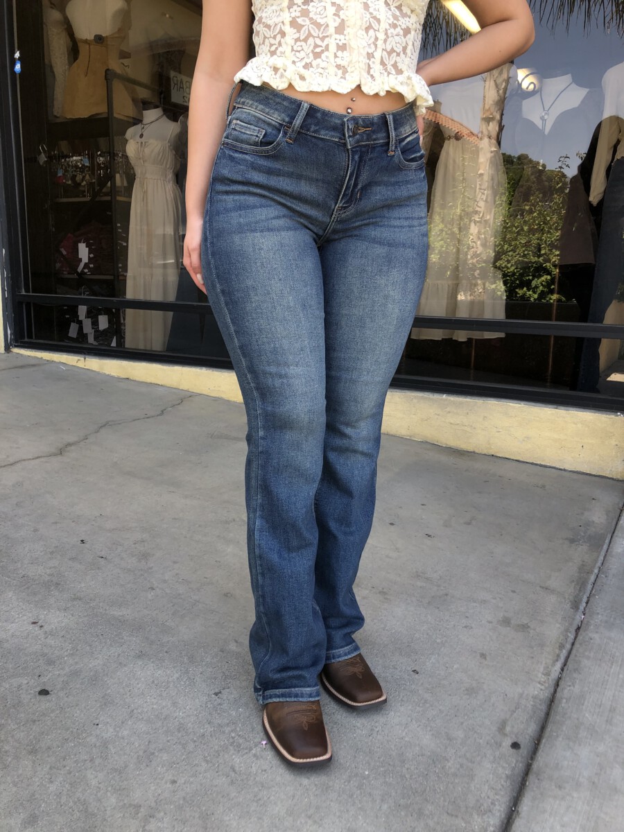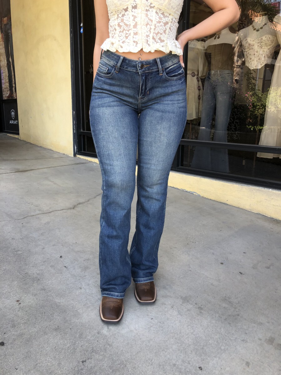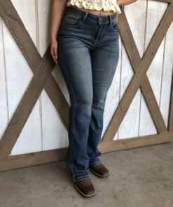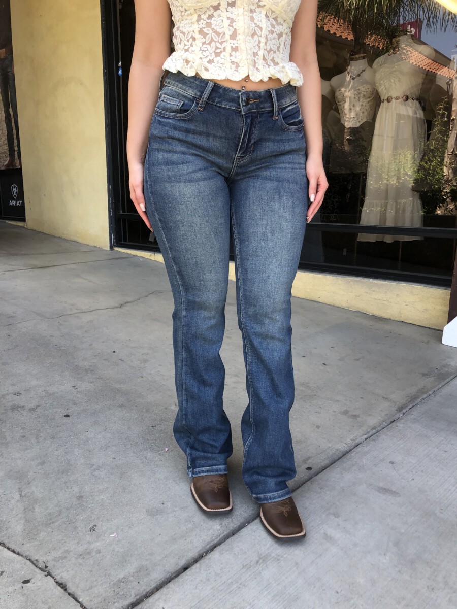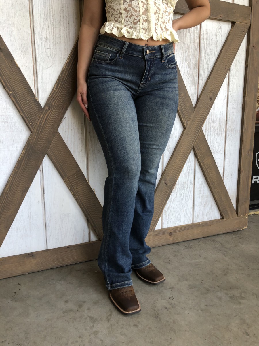 “Jianna” Mid Rise Bootcut With Flap Back Pockets Jeans ( Dark Tint )