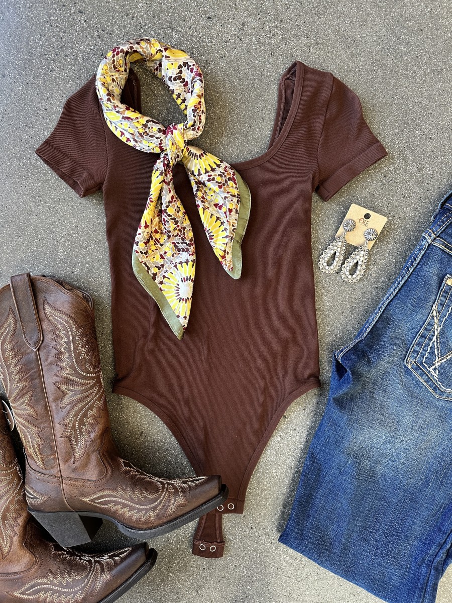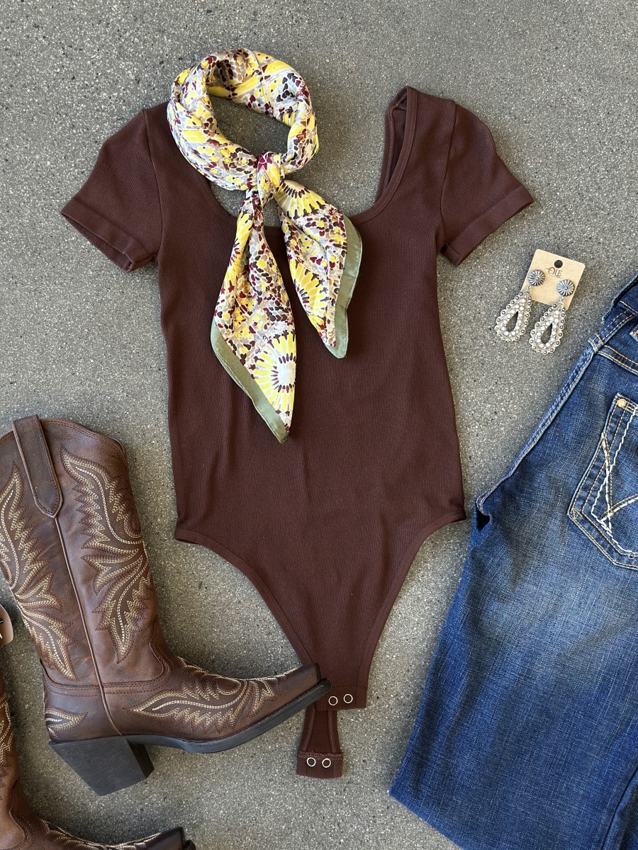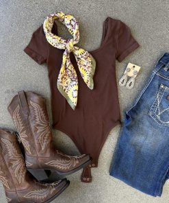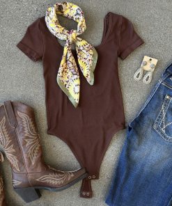 ” Anissa ” Square Neck Line Bodysuit ( Chocolate Brown )