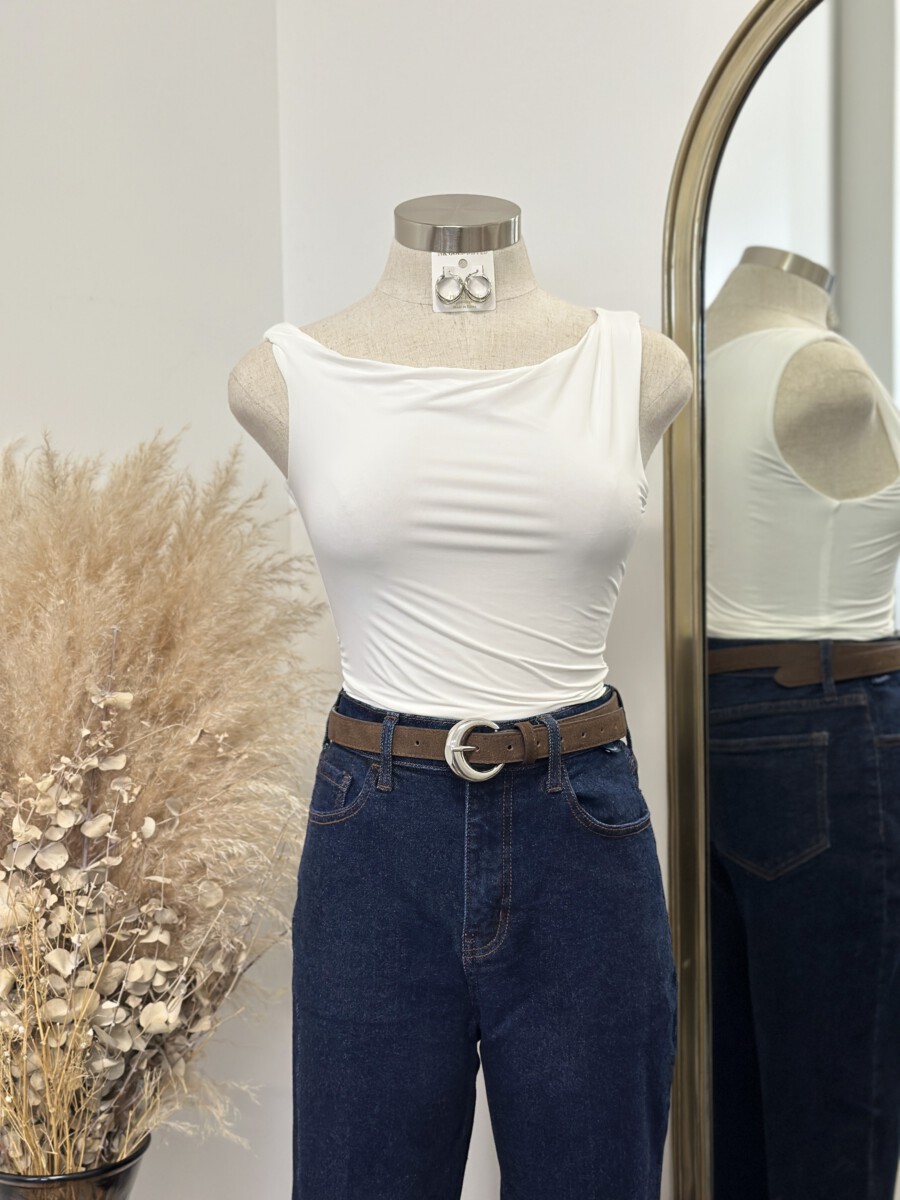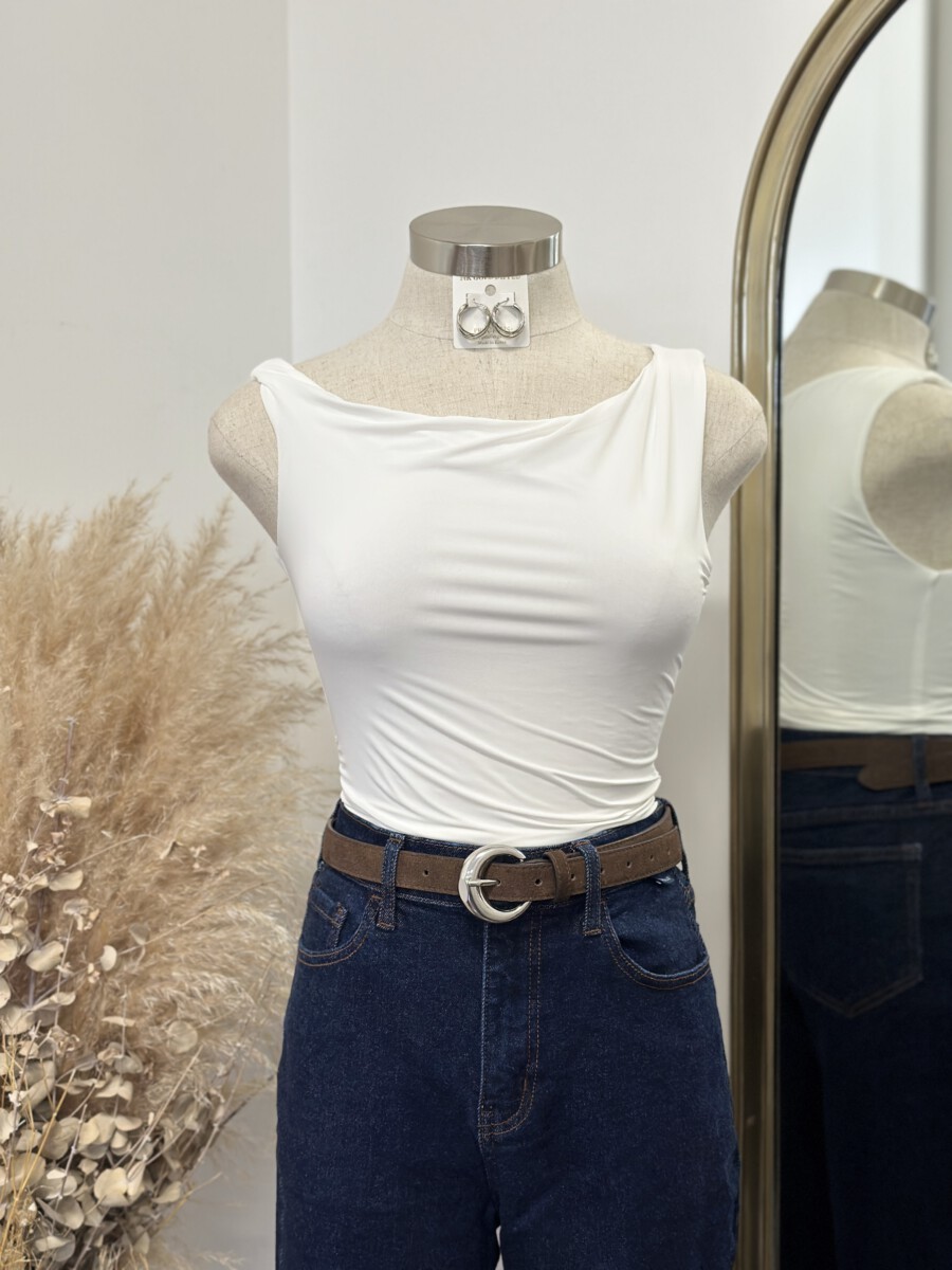 ” Aura ” Assymetrical Neckline One Shoulder Top ( White )
