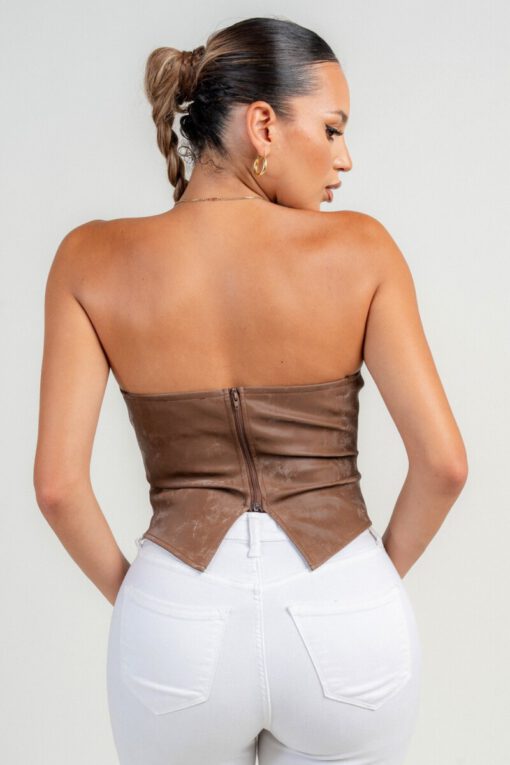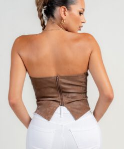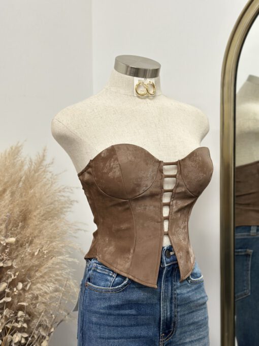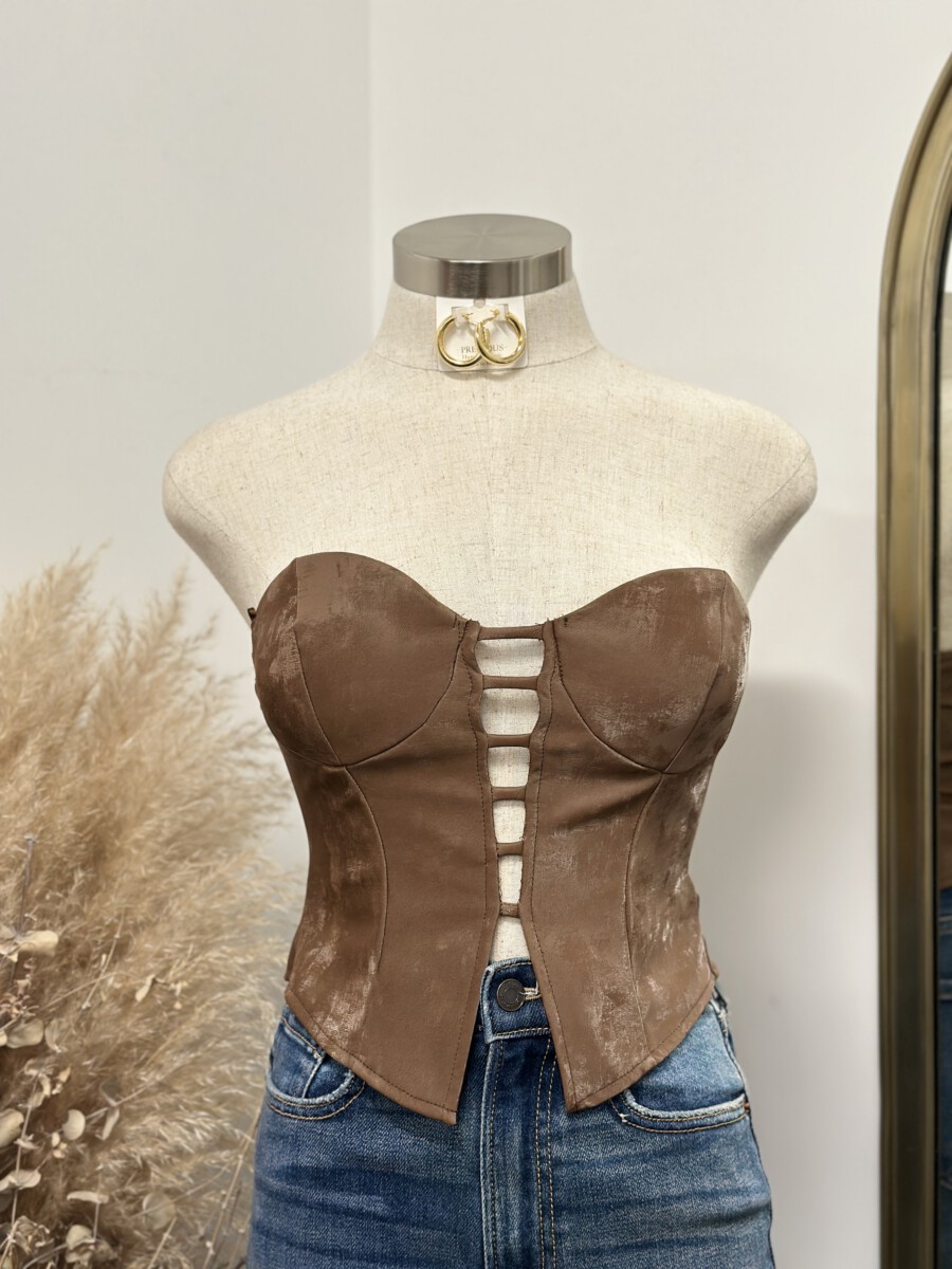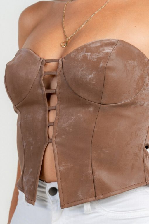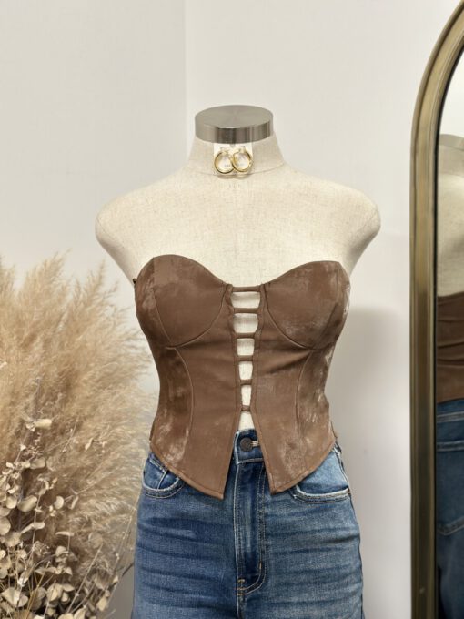 ” Blossom ” Tube Corset Front Cutout Peplum Top ( Brown )