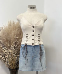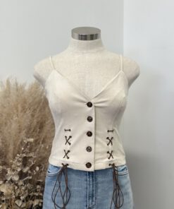 Be the first to review “” Breana ” Suede Button Down X Tie Detail Front Top ( Cream )” Cancel reply
