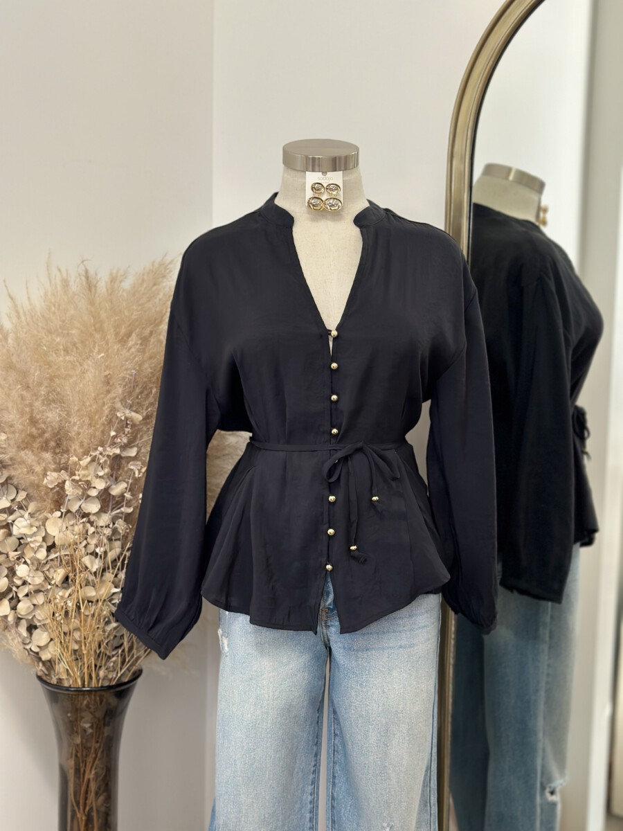 ” Briella ” Long-sleeved V-neck Blouse ( Black )