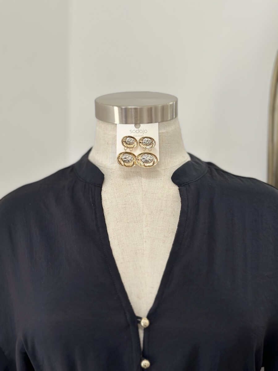 ” Ashley ” Smocked Button Down Top ( Navy ) FINAL SALE