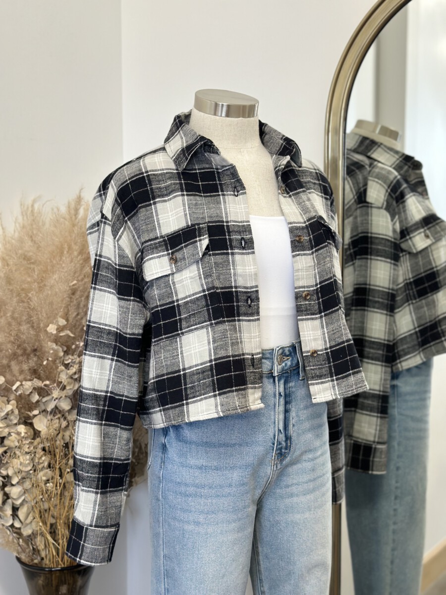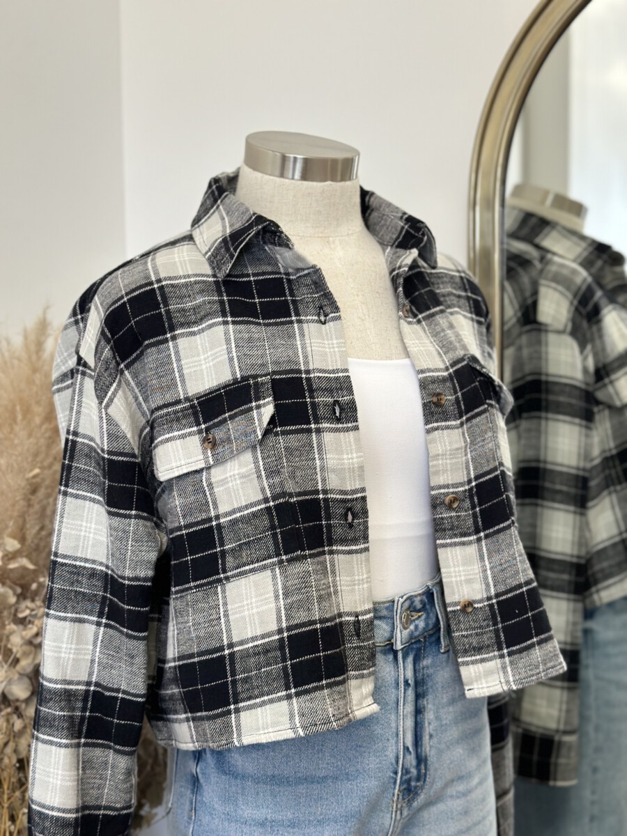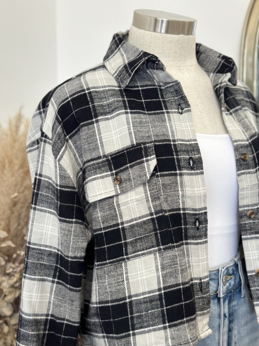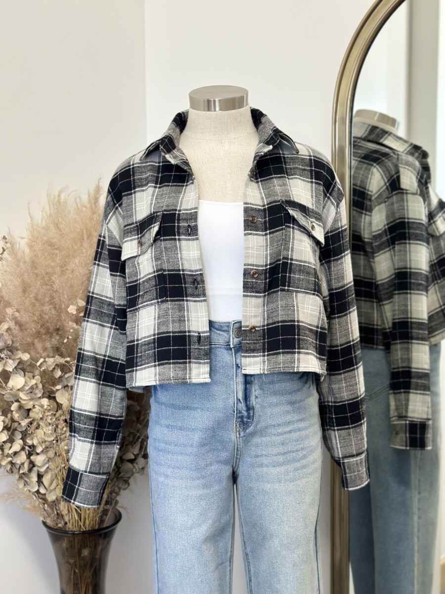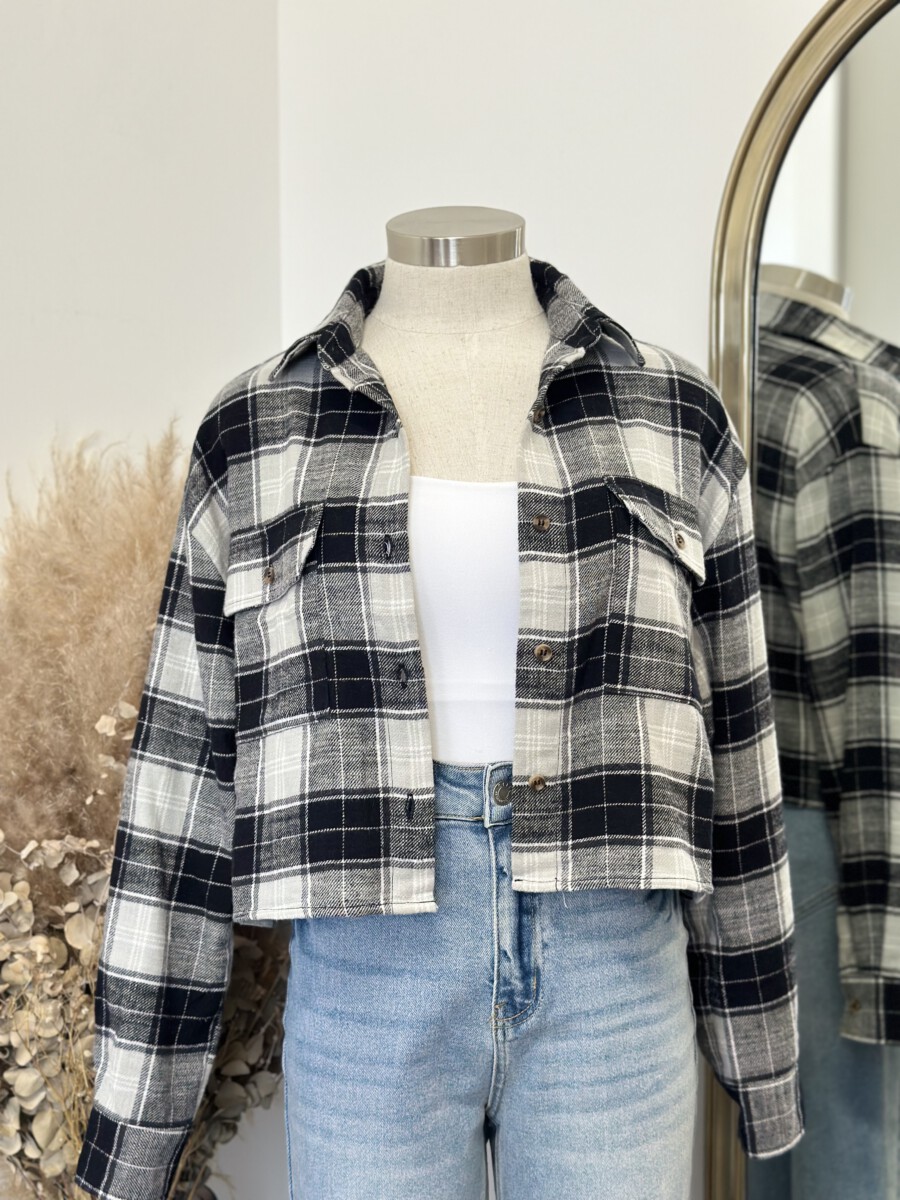 ” Candance ” Flannel Crop Top ( Black )