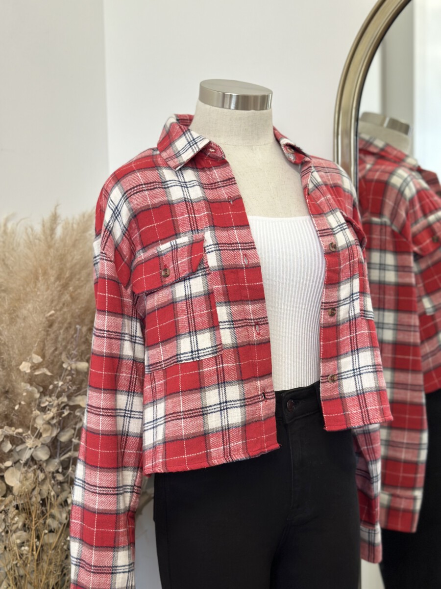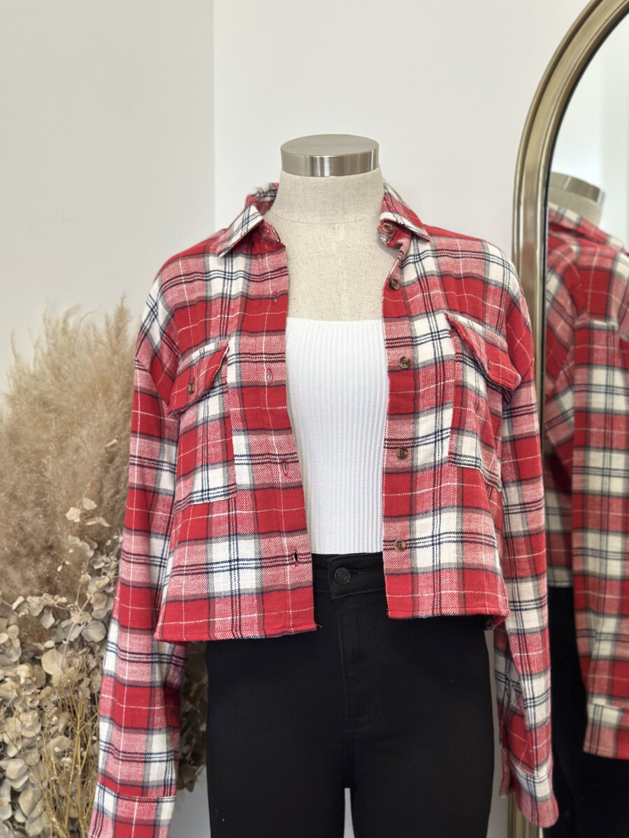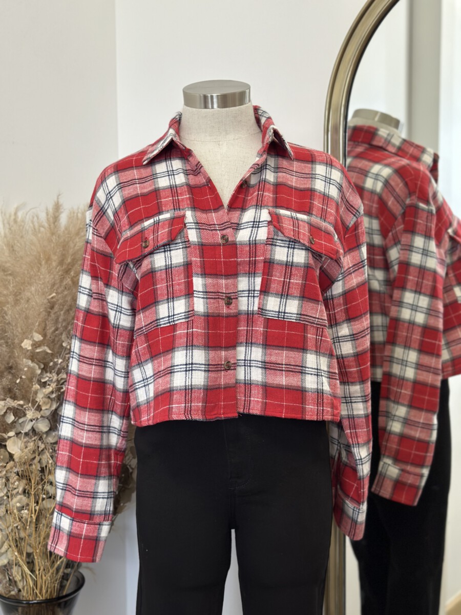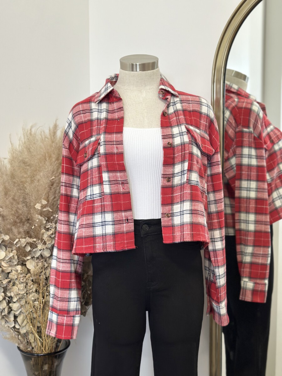 ” Candance ” Flannel Crop Top ( Red )