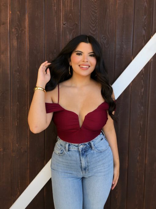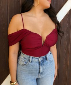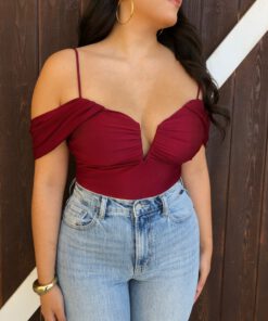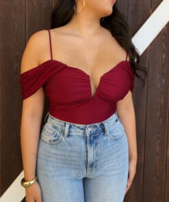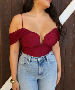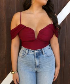 Be the first to review “” Celestia ” V Wire Inset Off Shoulder Bodysuit ( Dark Cherry )” Cancel reply