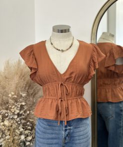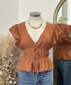 Be the first to review “” Cora ” V-neck Front Tie Ruffle Shoulder Top ( Rust )” Cancel reply