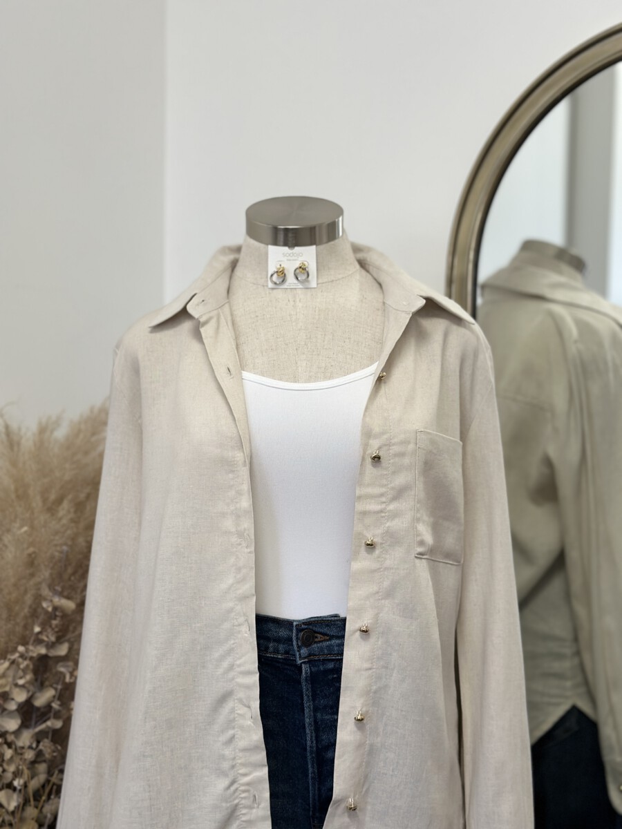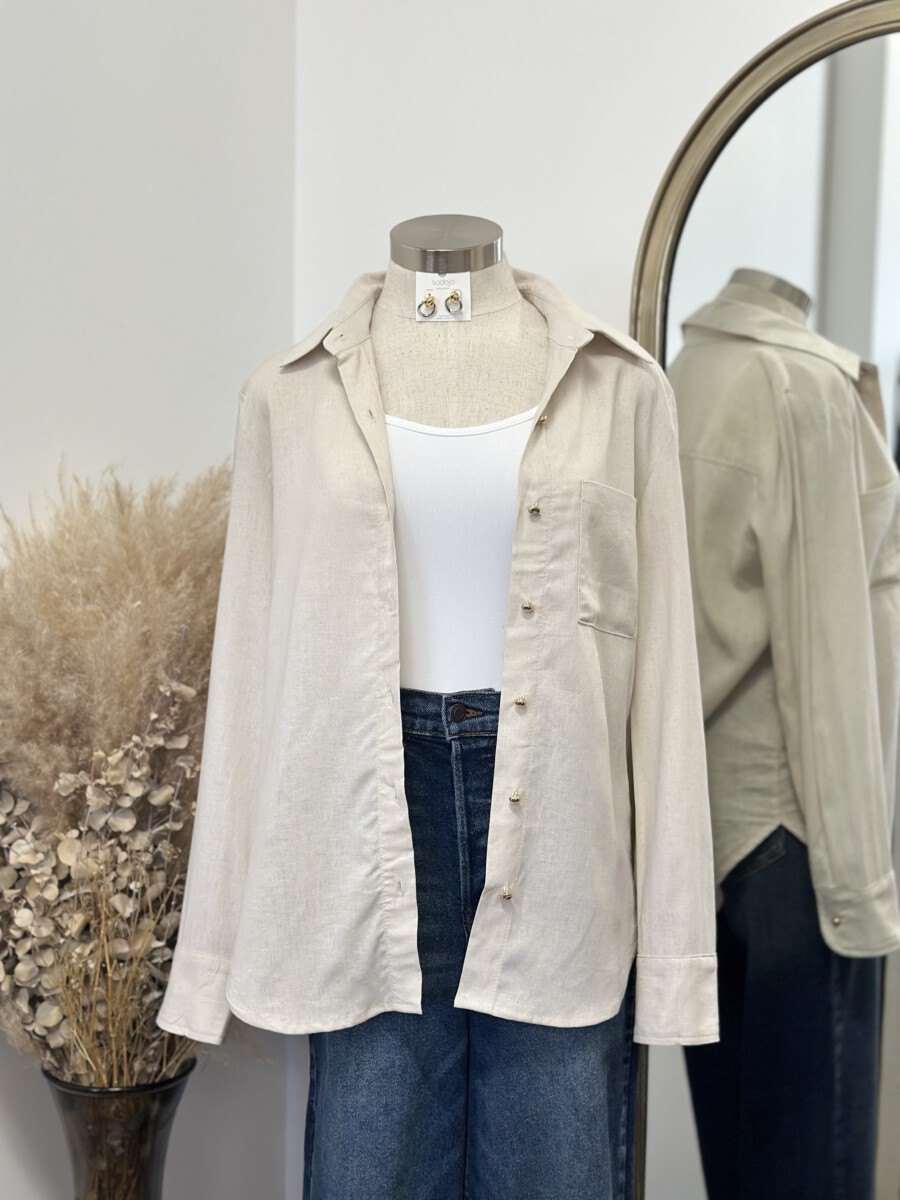 - FEATURES– Collared, Gold Toned Buttons, Relaxed Fit, & Long Sleeves