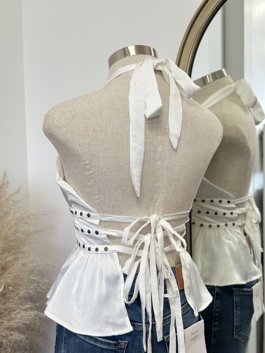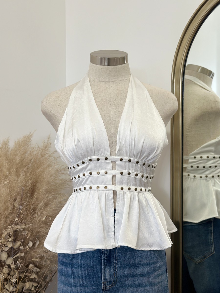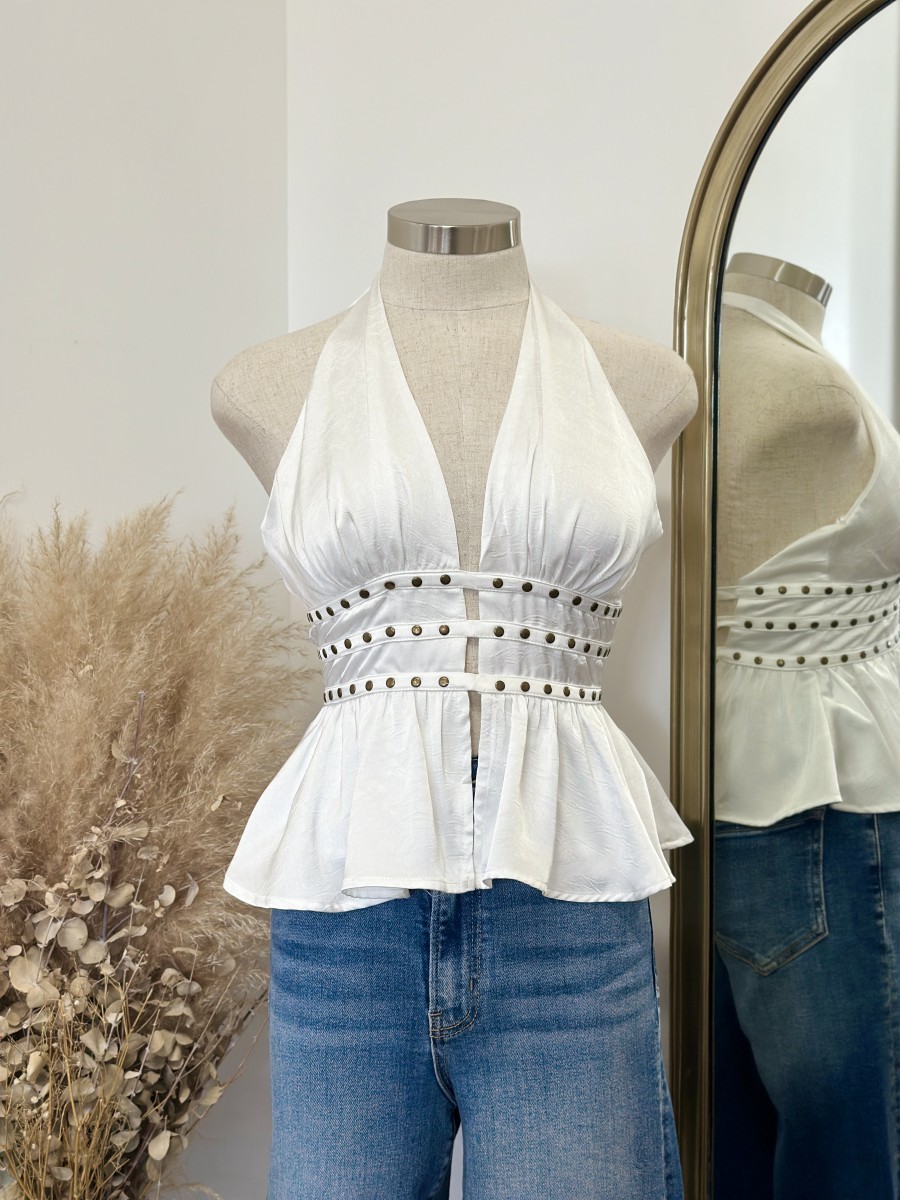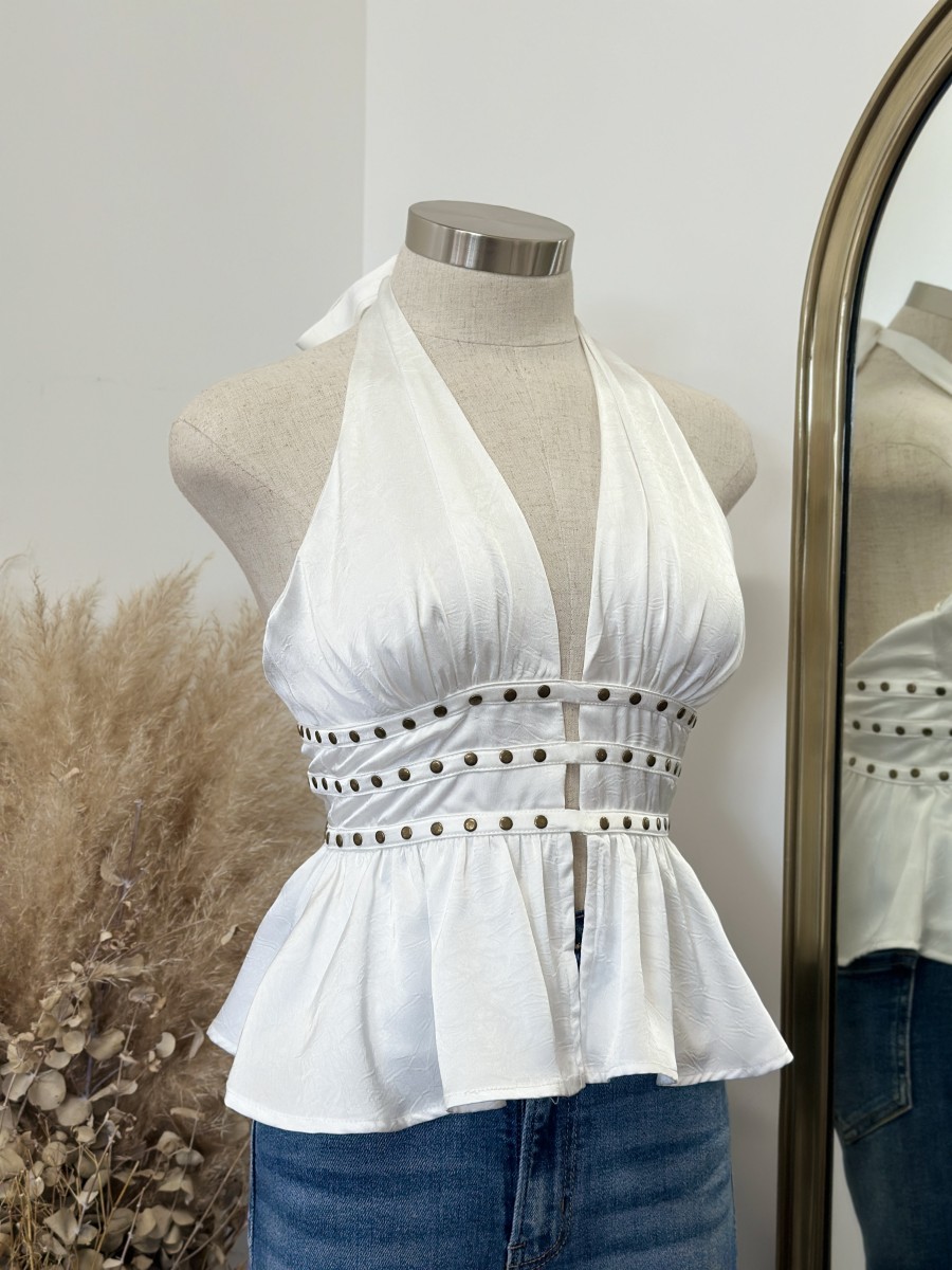 ” Elani ” Halter Neck Studded Top ( White )