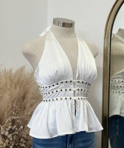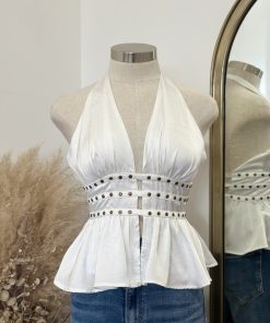 Be the first to review “” Elani ” Halter Neck Studded Top ( White )” Cancel reply