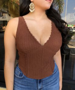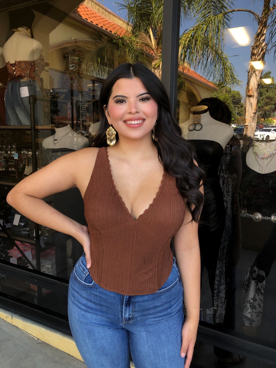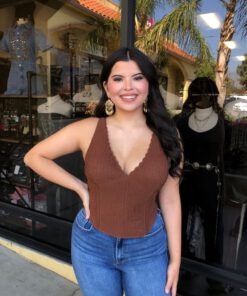 ” Lilah ” Halter Neck Corset Top ( Brown )