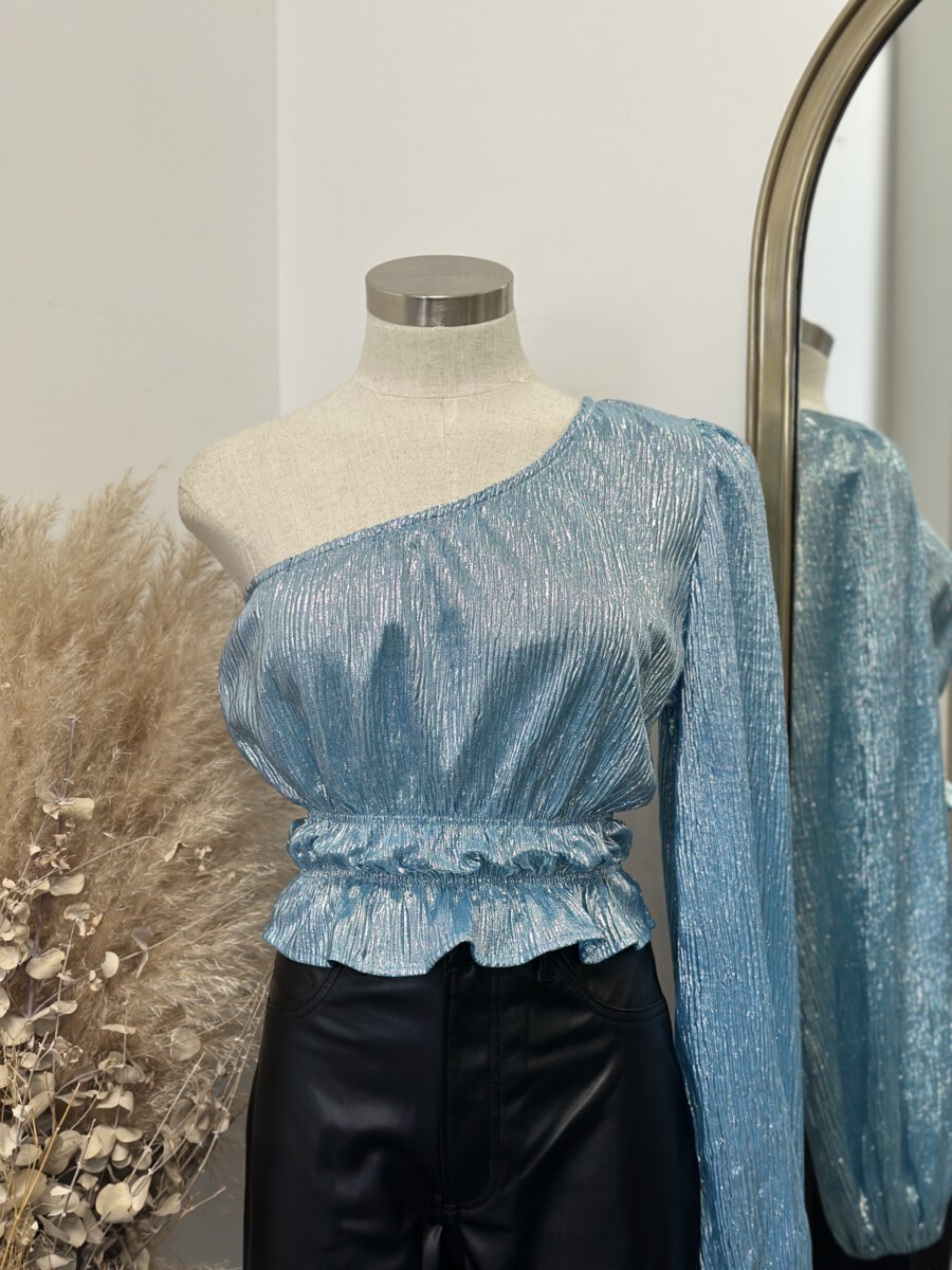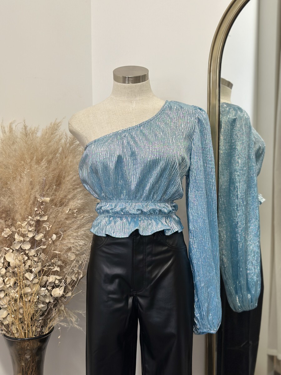” Ellen ” One Shoulder Top ( Baby Blue )