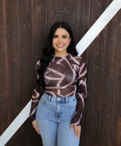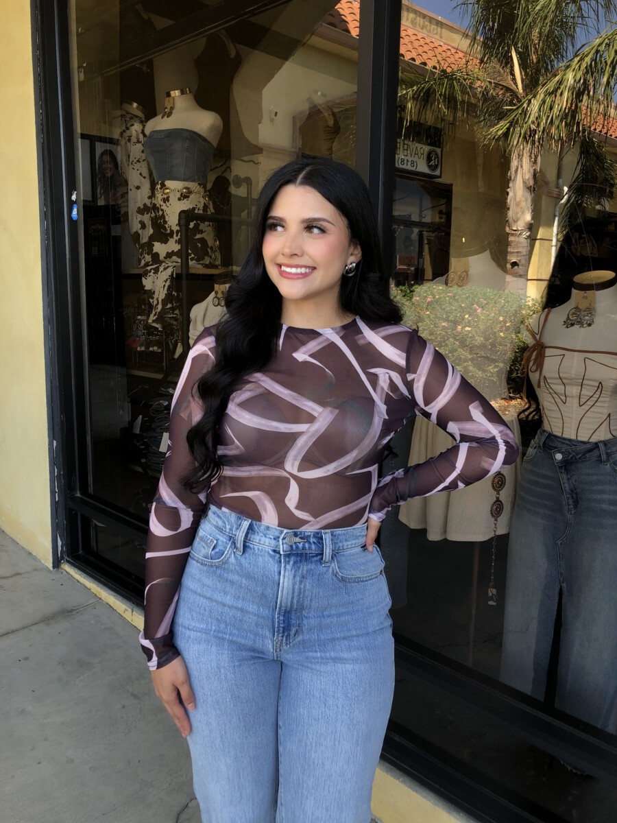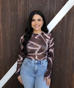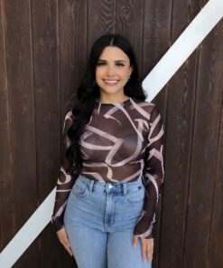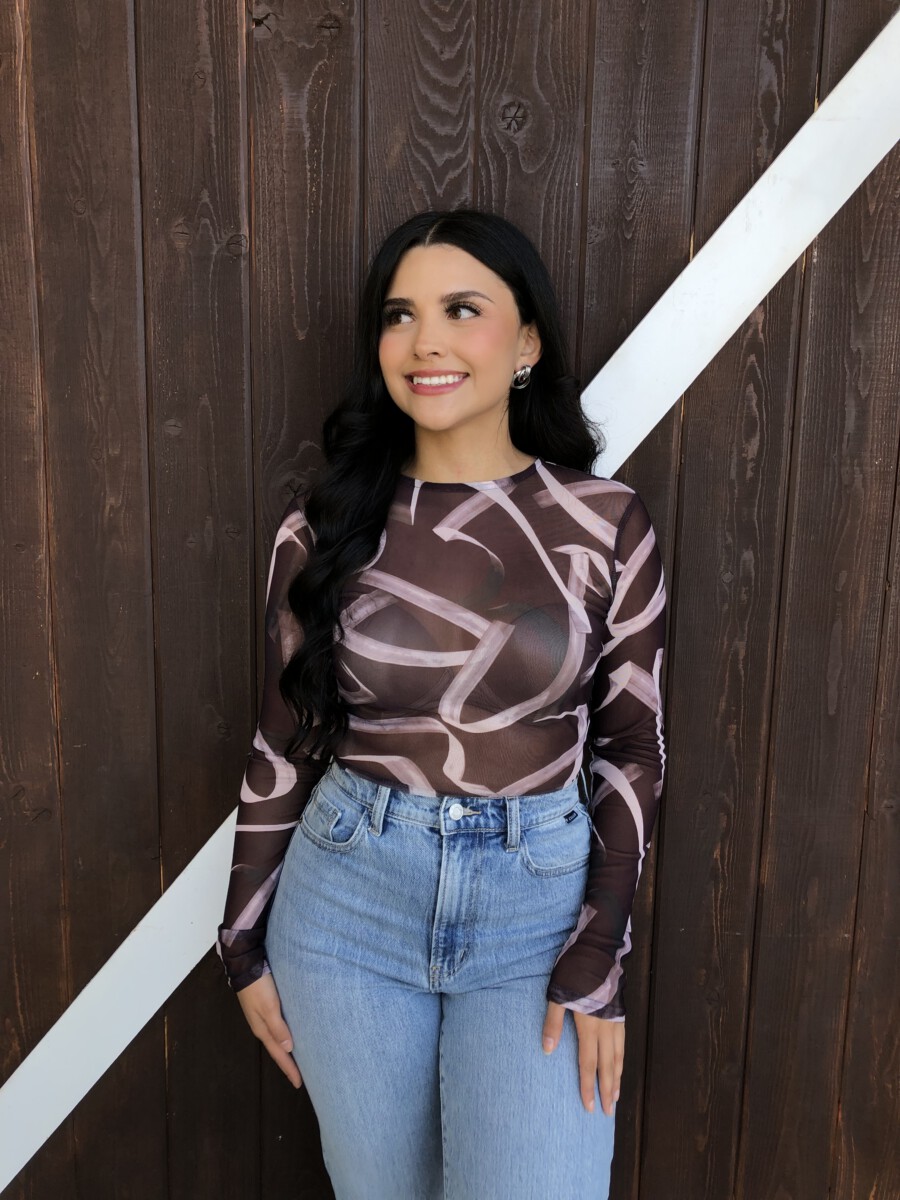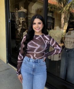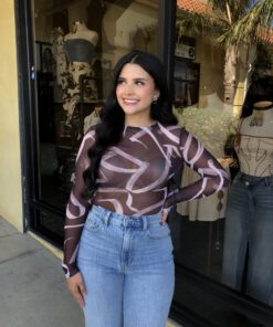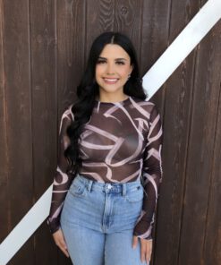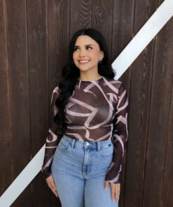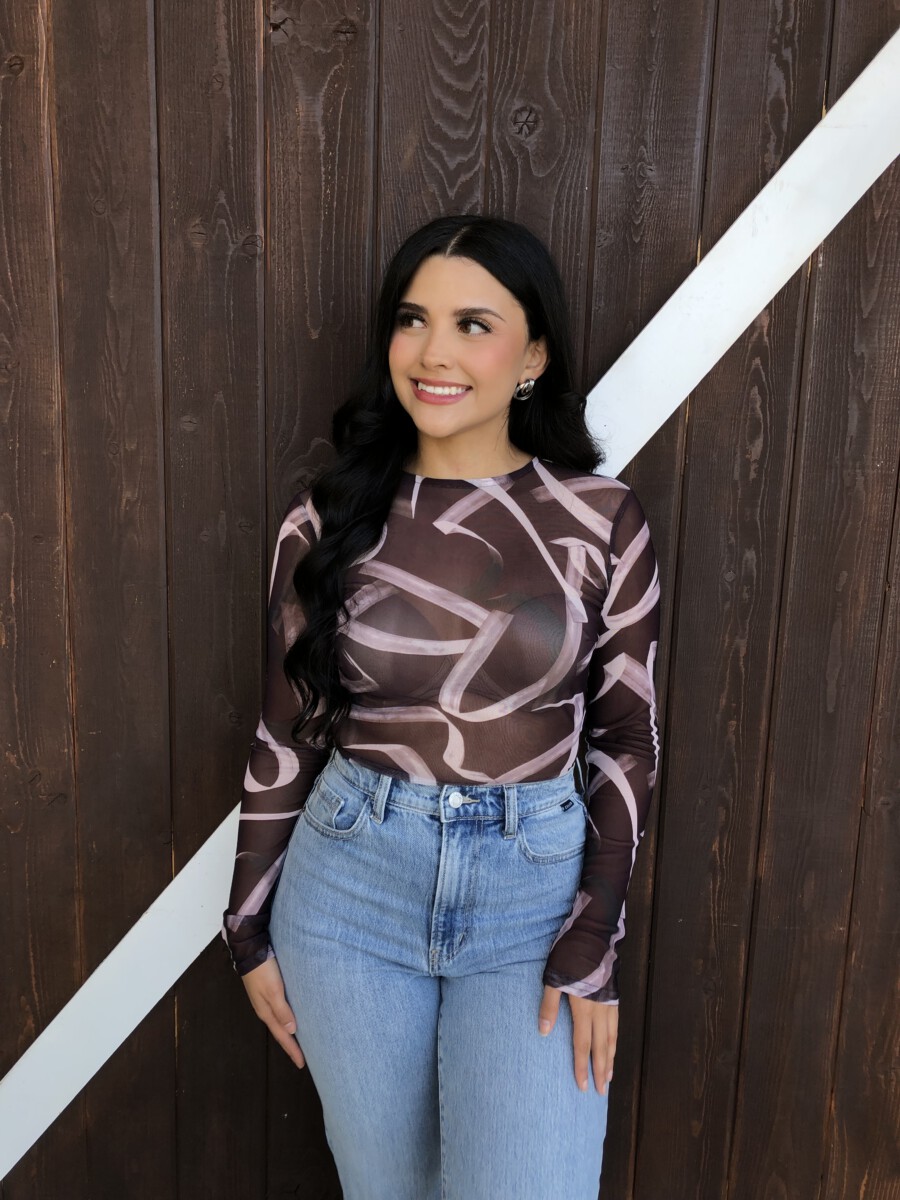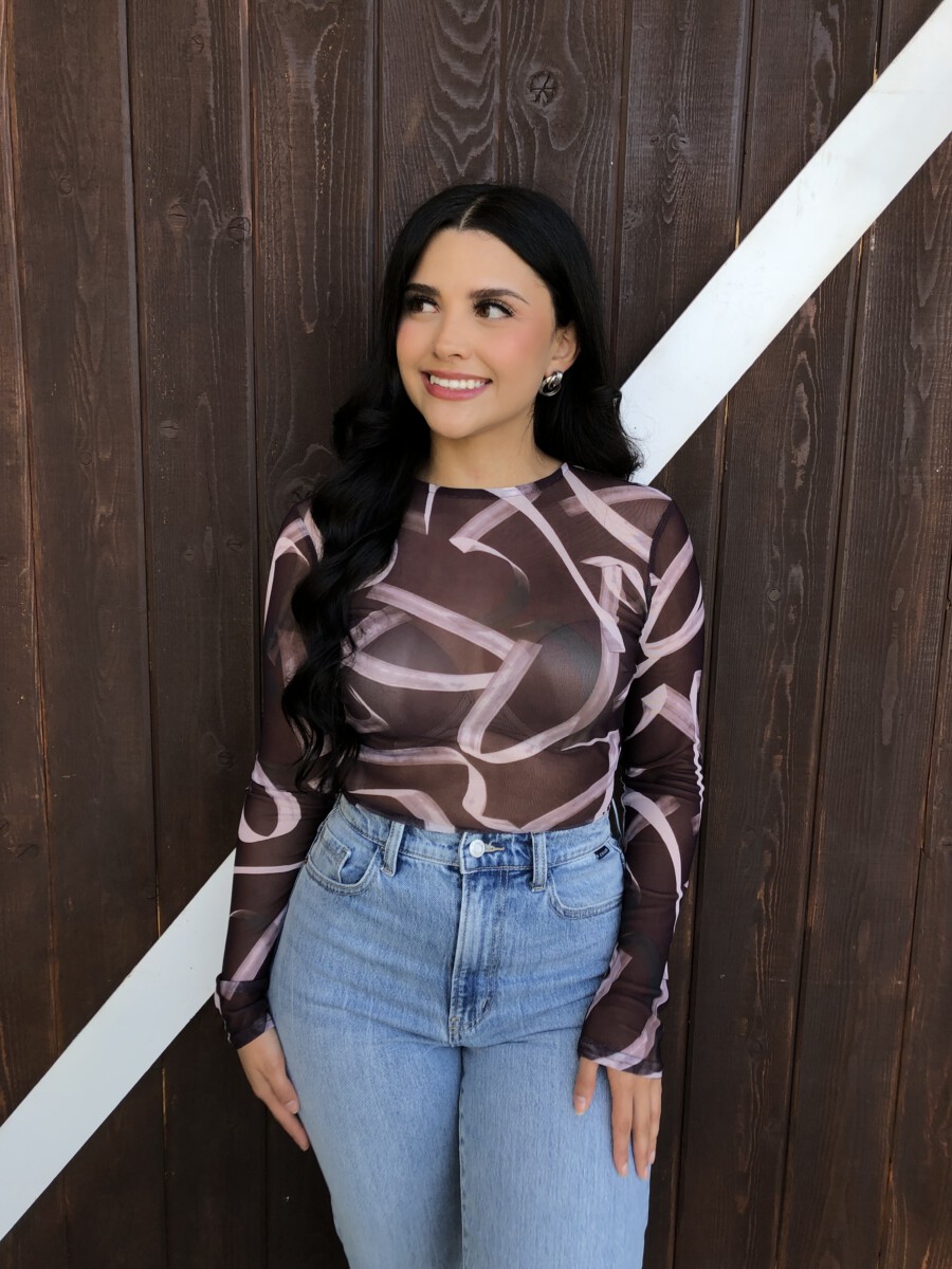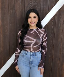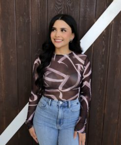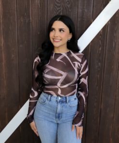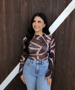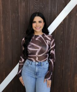 ” Emmie ” Mesh Print Long Sleeve Bodysuit ( Chocolate Brown )