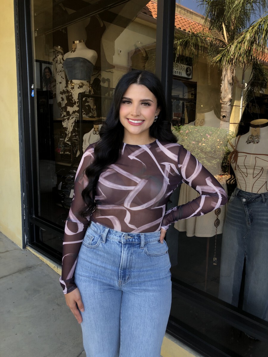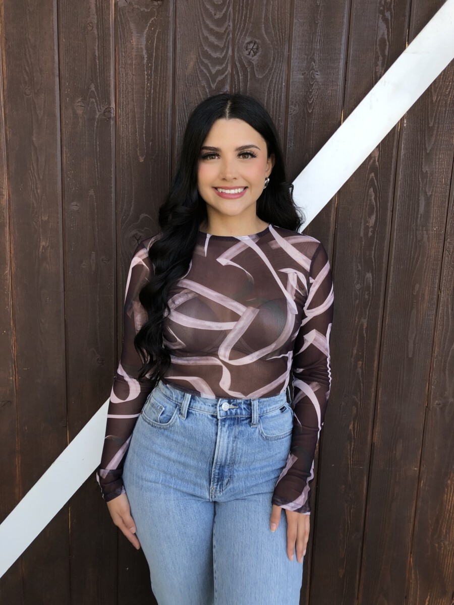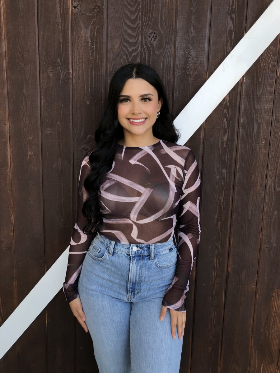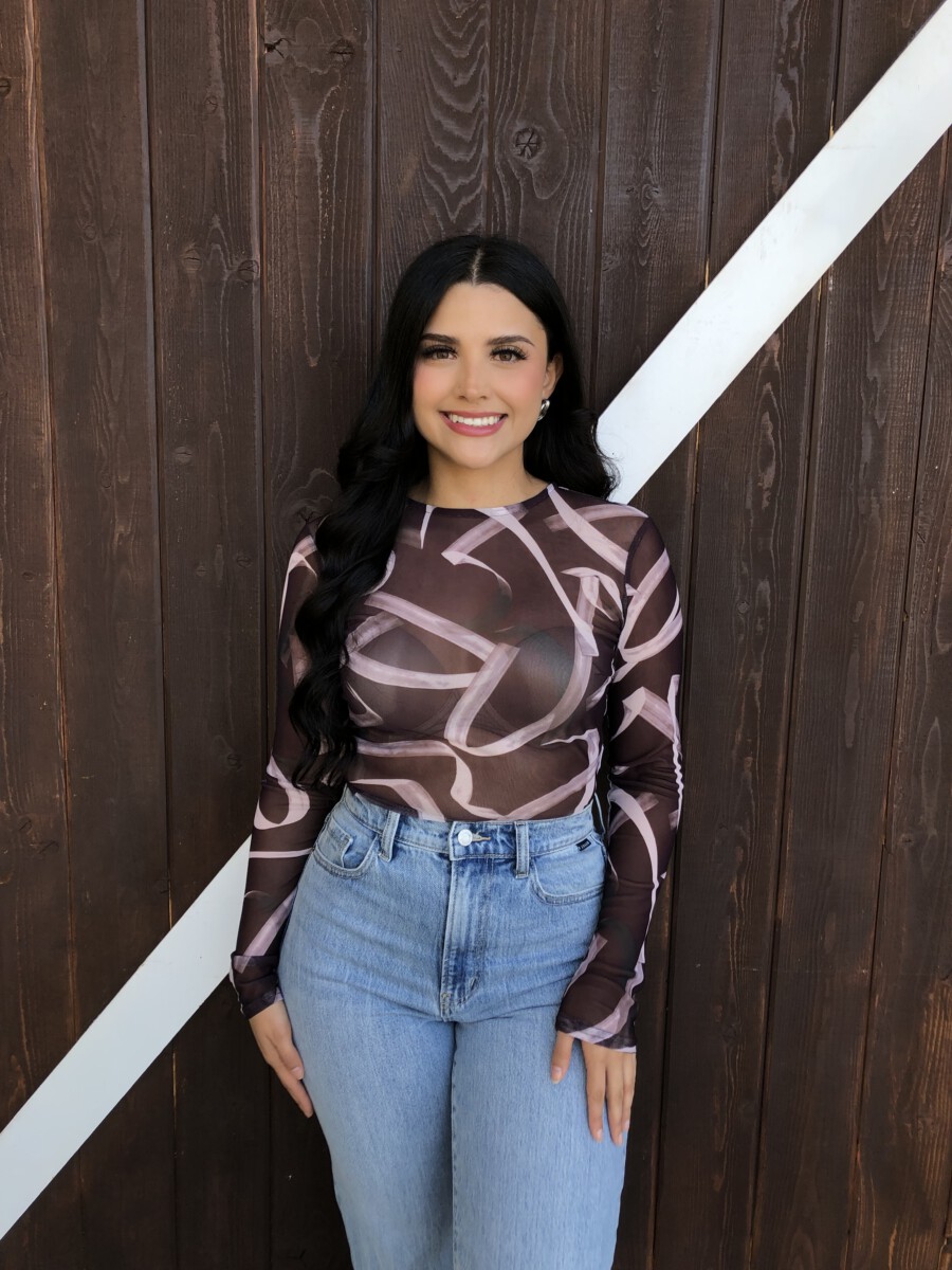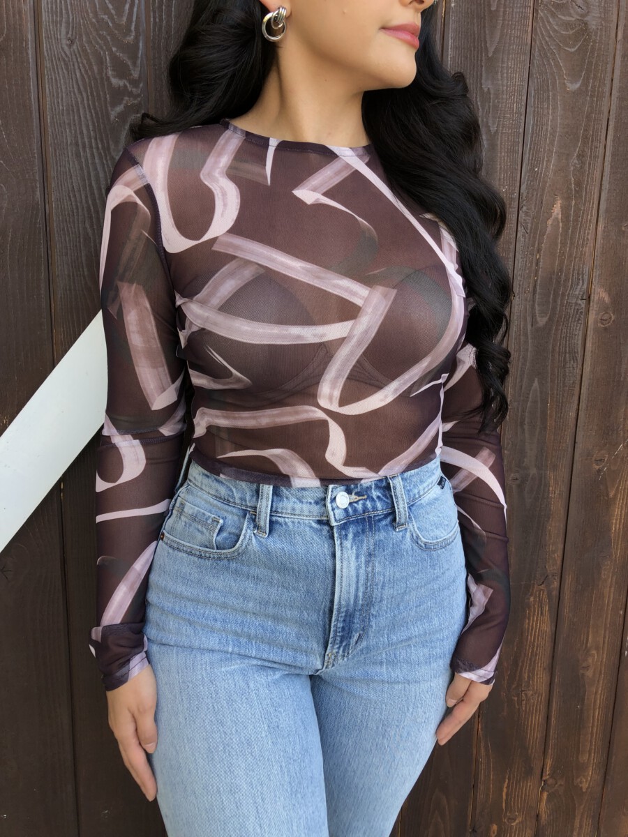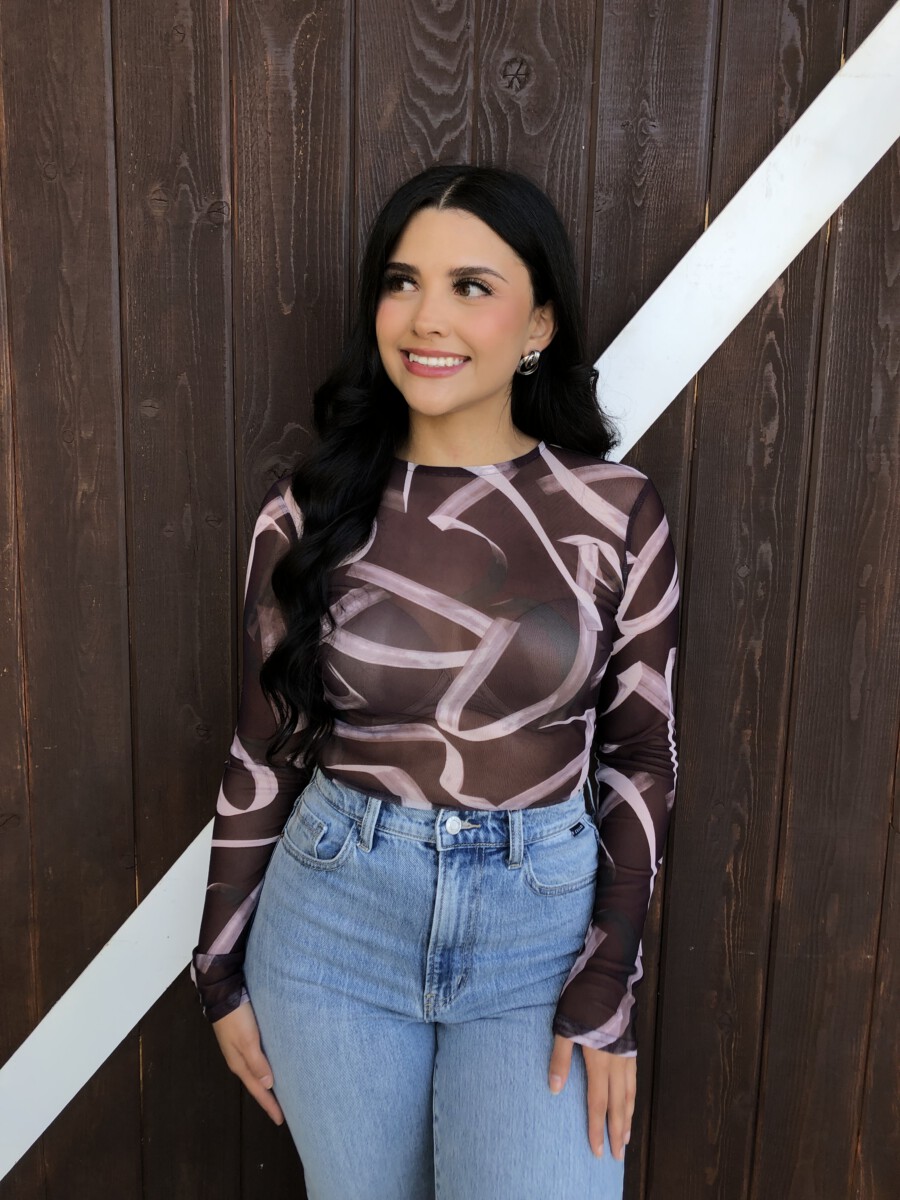 ” Emmie ” Mesh Print Long Sleeve Bodysuit ( Chocolate Brown )