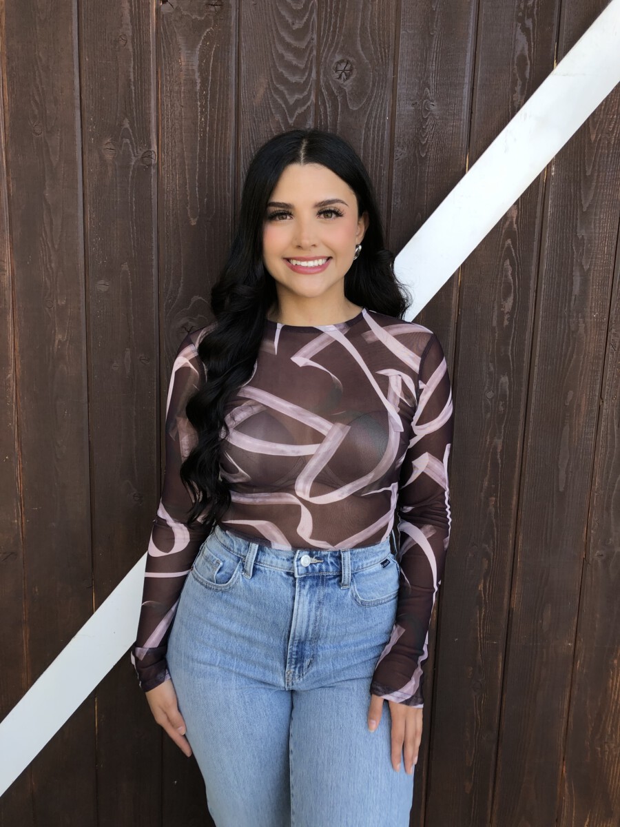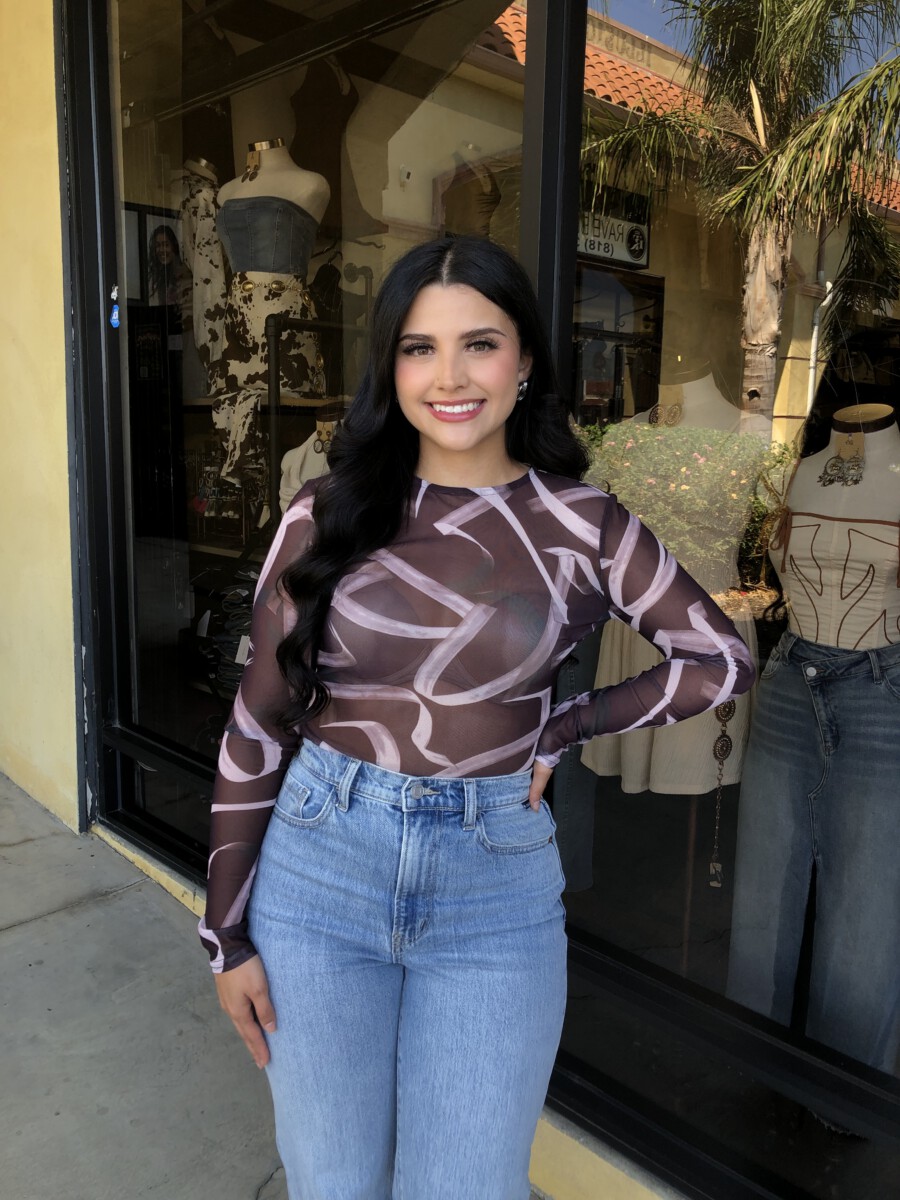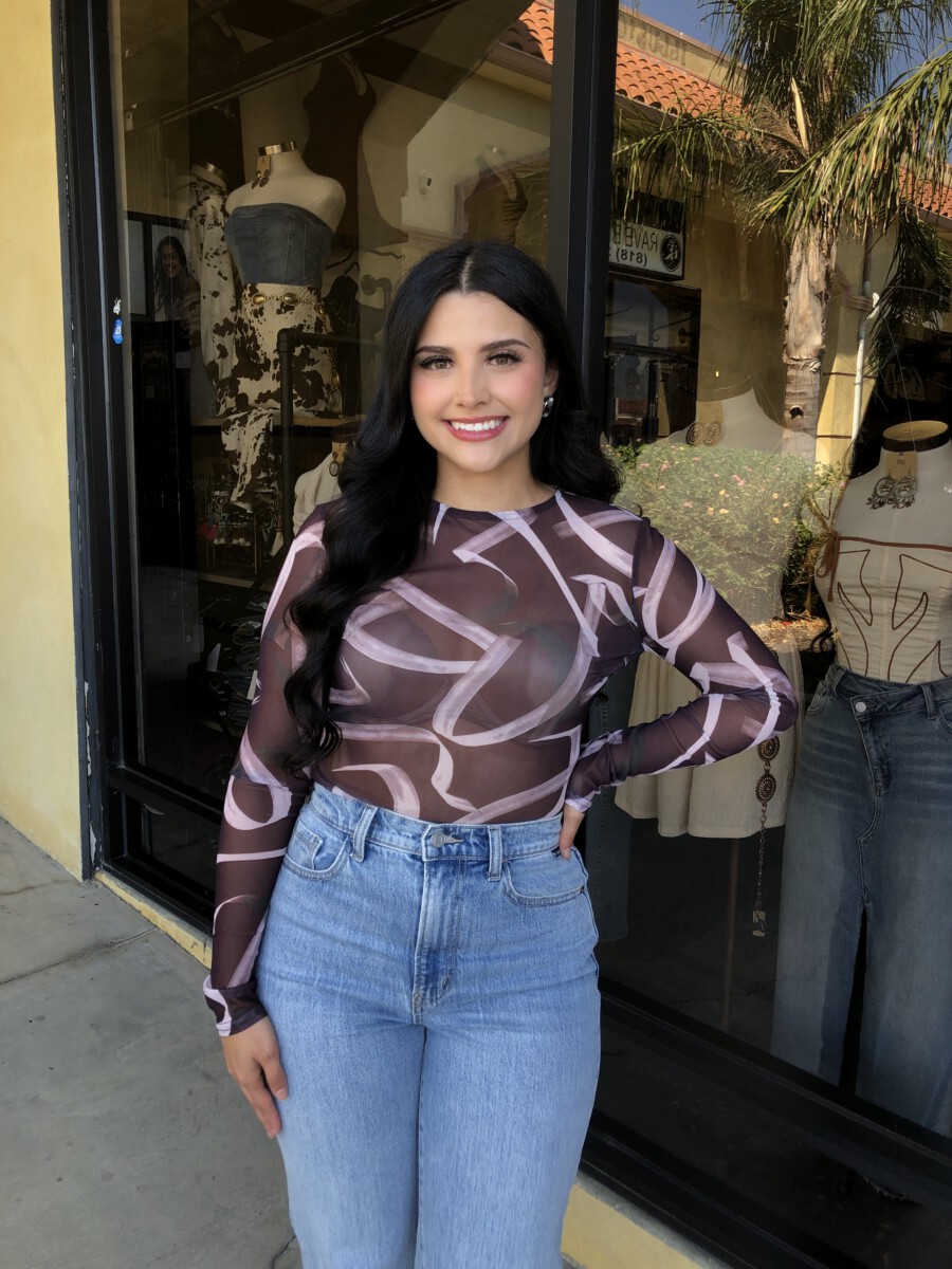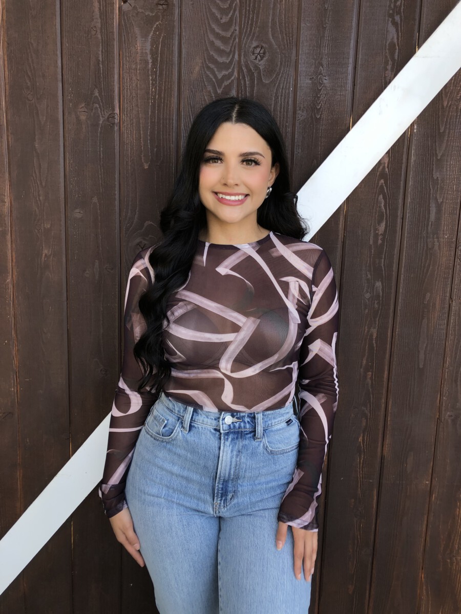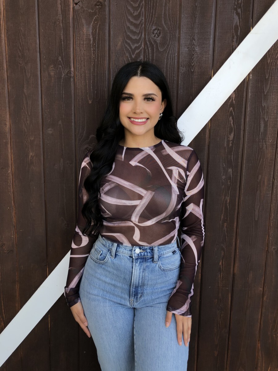 ” Emmie ” Mesh Print Long Sleeve Bodysuit ( Chocolate Brown )