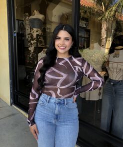 Be the first to review “” Emmie ” Mesh Print Long Sleeve Bodysuit ( Chocolate Brown )” Cancel reply