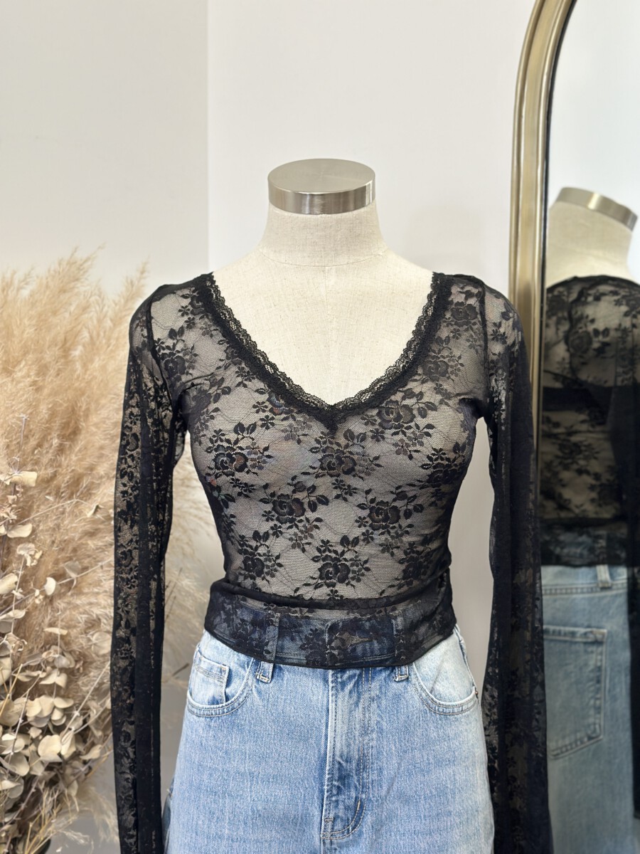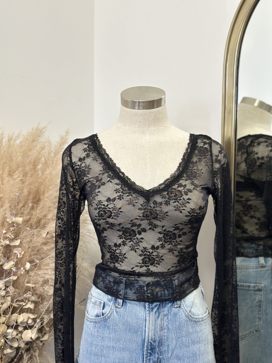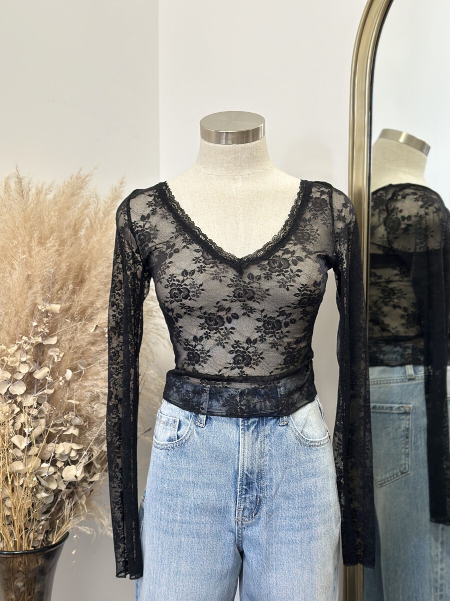 ” Hallie ” Lace Long Sleeve Top ( Black )