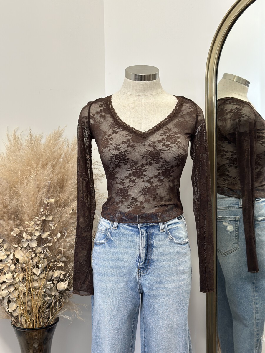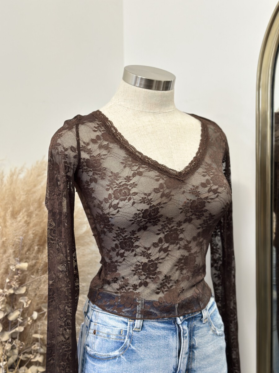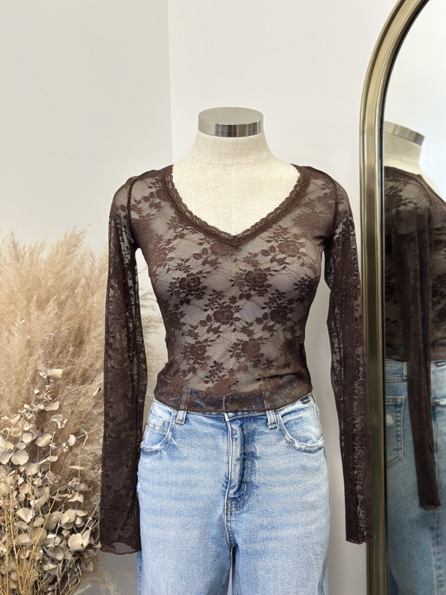 ” Hallie ” Lace Long Sleeve Top ( Brown )