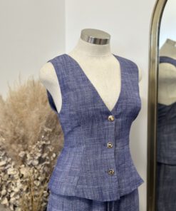 Be the first to review “” Isla ” Linen Gold Button Detail Vest ( Indigo )” Cancel reply
