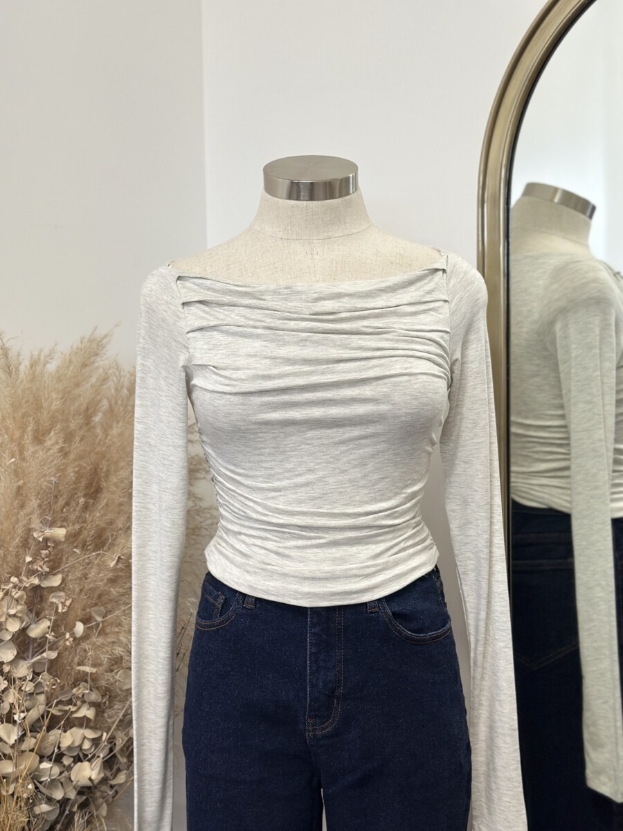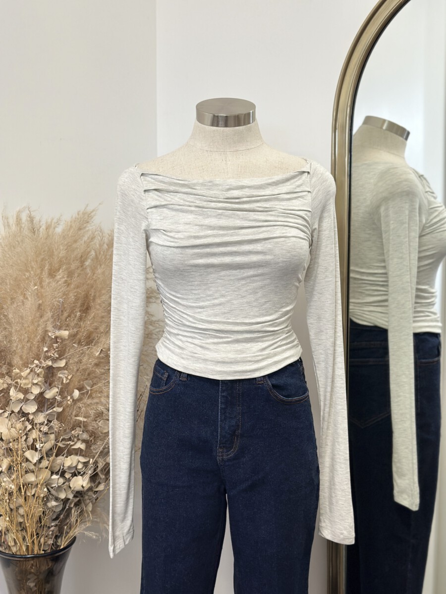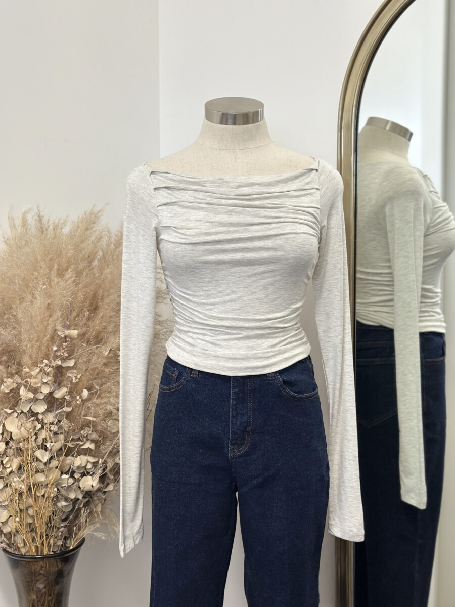 ” Jolina ” Core Basic Long Sleeve Top ( Heather White )