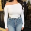 ” Leslie ” Long Sleeve Blouse With Side Wrap Tie & Collar ( White ) Final Sale
