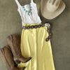 ” Natalia ” Floral V Neck Puff Sleeve Ruched Crop Top ( Yellow ) FINAL SALE