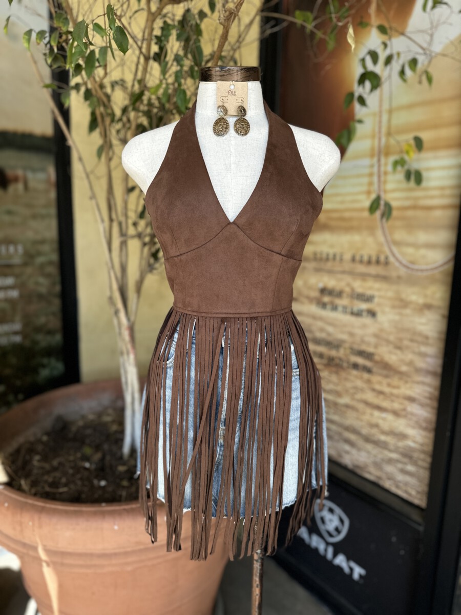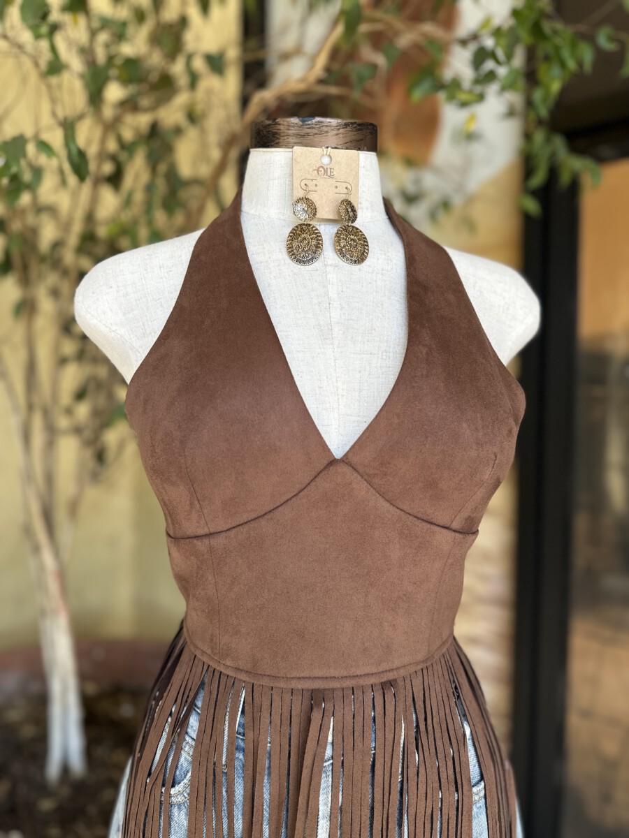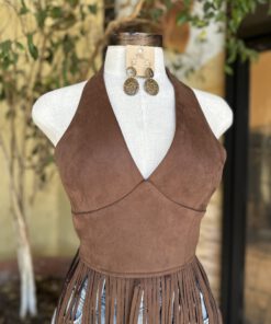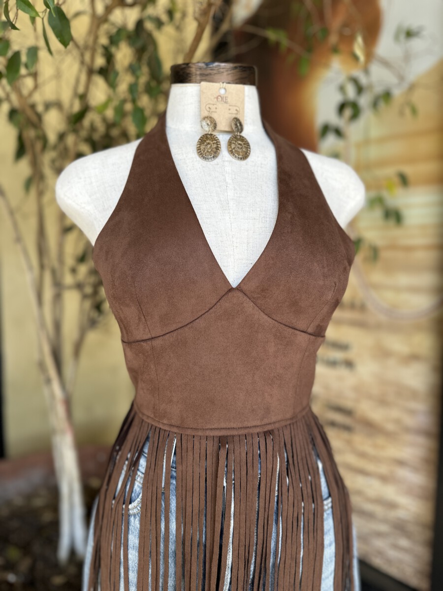 ” Kalinda ” Long Fringe Halter Top ( Brown )