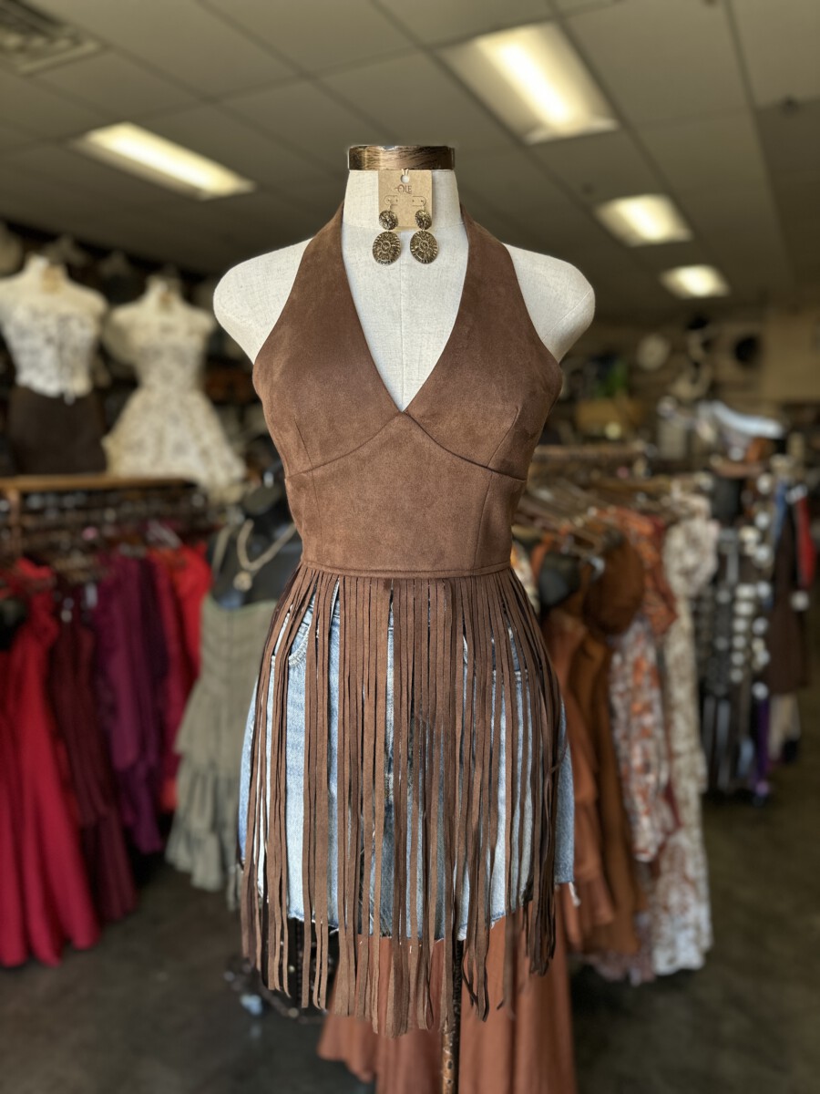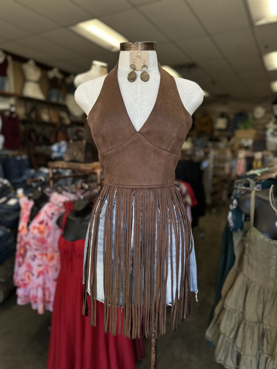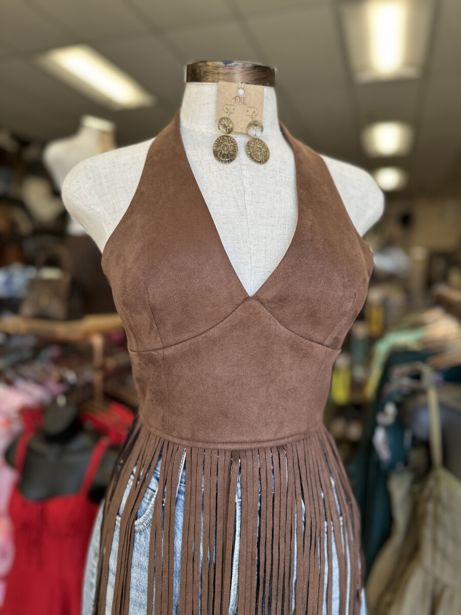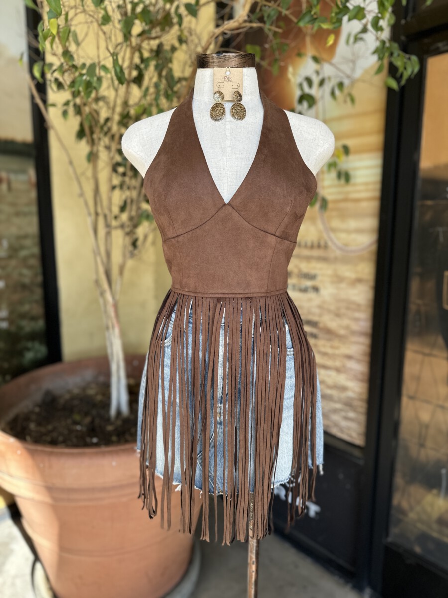 ” Kalinda ” Long Fringe Halter Top ( Brown )