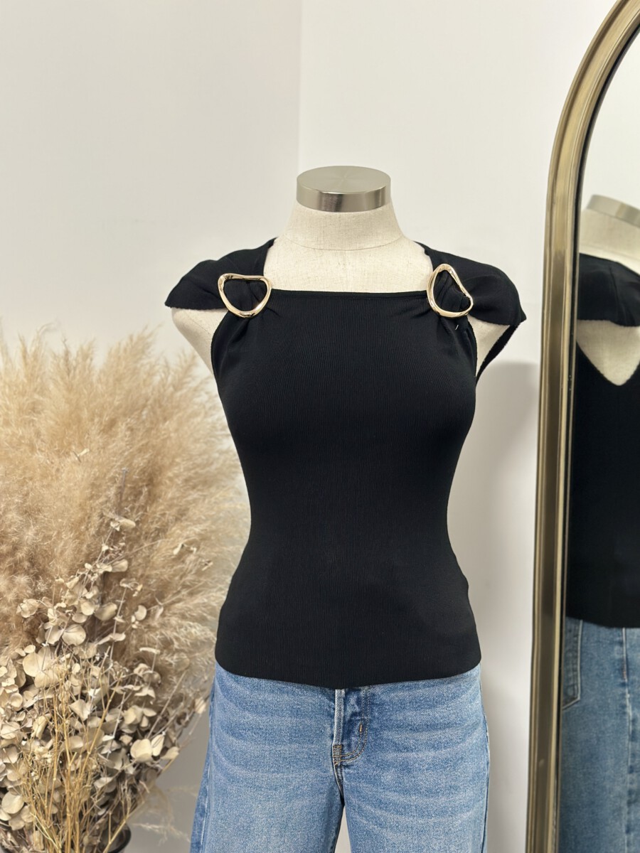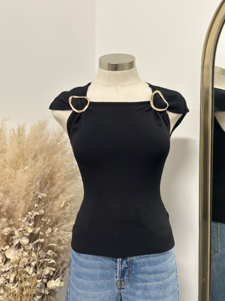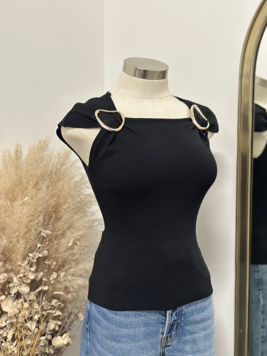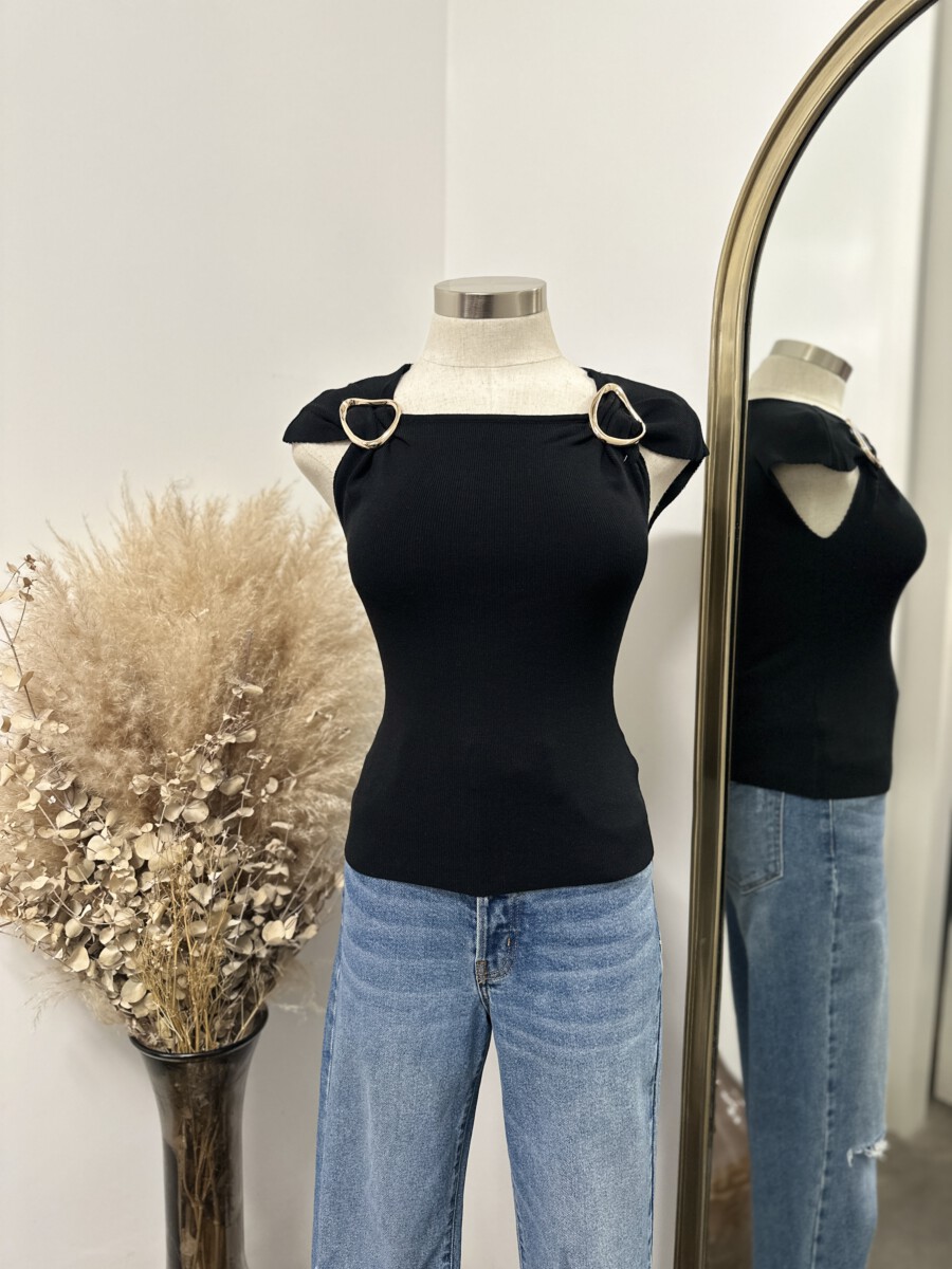 ” Mabeline ” Raglan Trim Detail Knit Top ( Black )