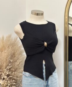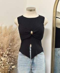 Be the first to review “” Marigold ” Round Neck Ruched Bust Sleeveless Knit Top ( Black )” Cancel reply