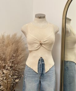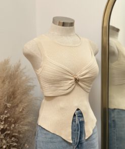 Be the first to review “” Marigold ” Round Neck Ruched Bust Sleeveless Knit Top ( Taupe )” Cancel reply