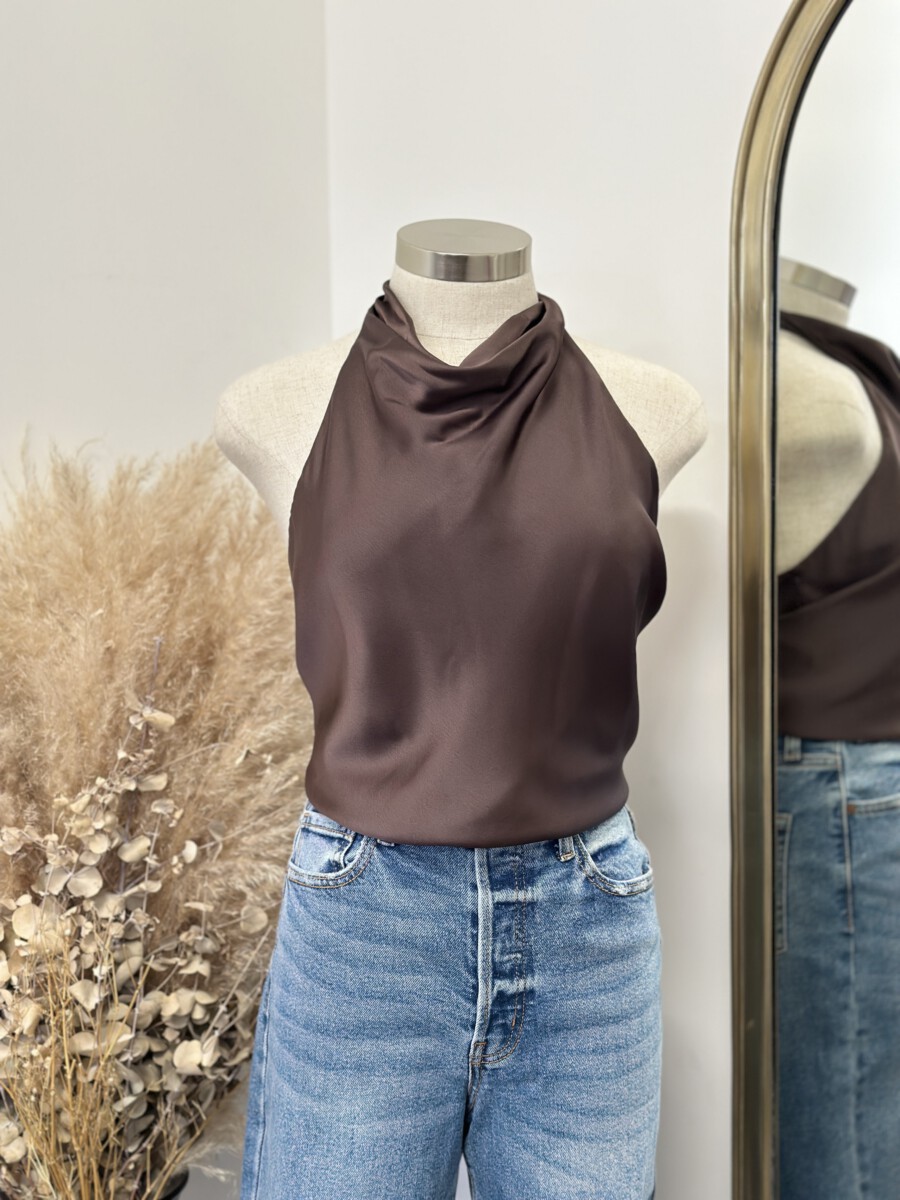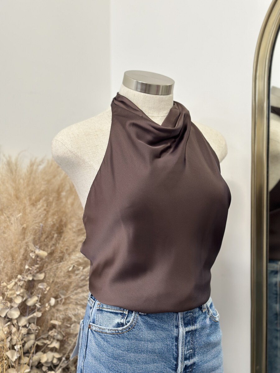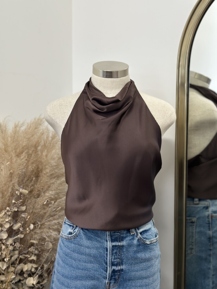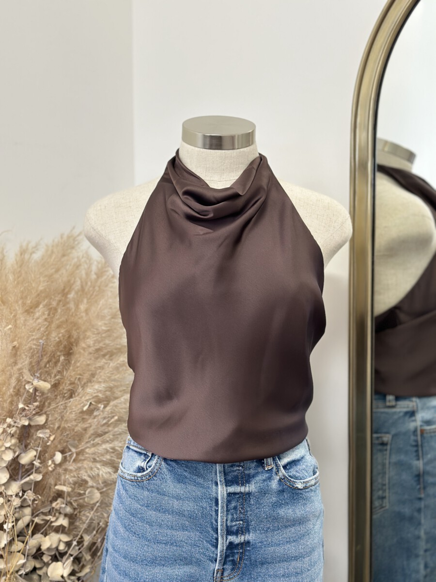 Be the first to review “” Marjorie ” Satin Halter Top ( Brown )” Cancel reply