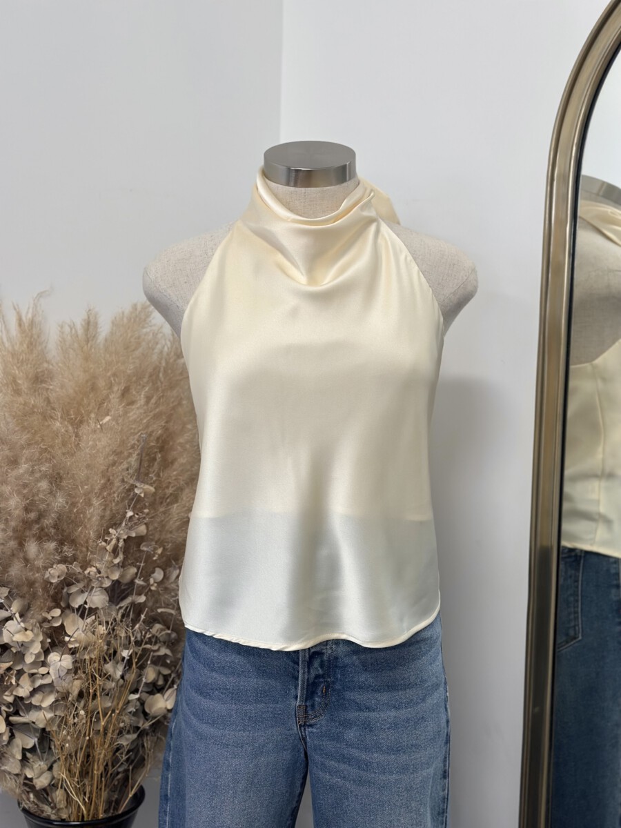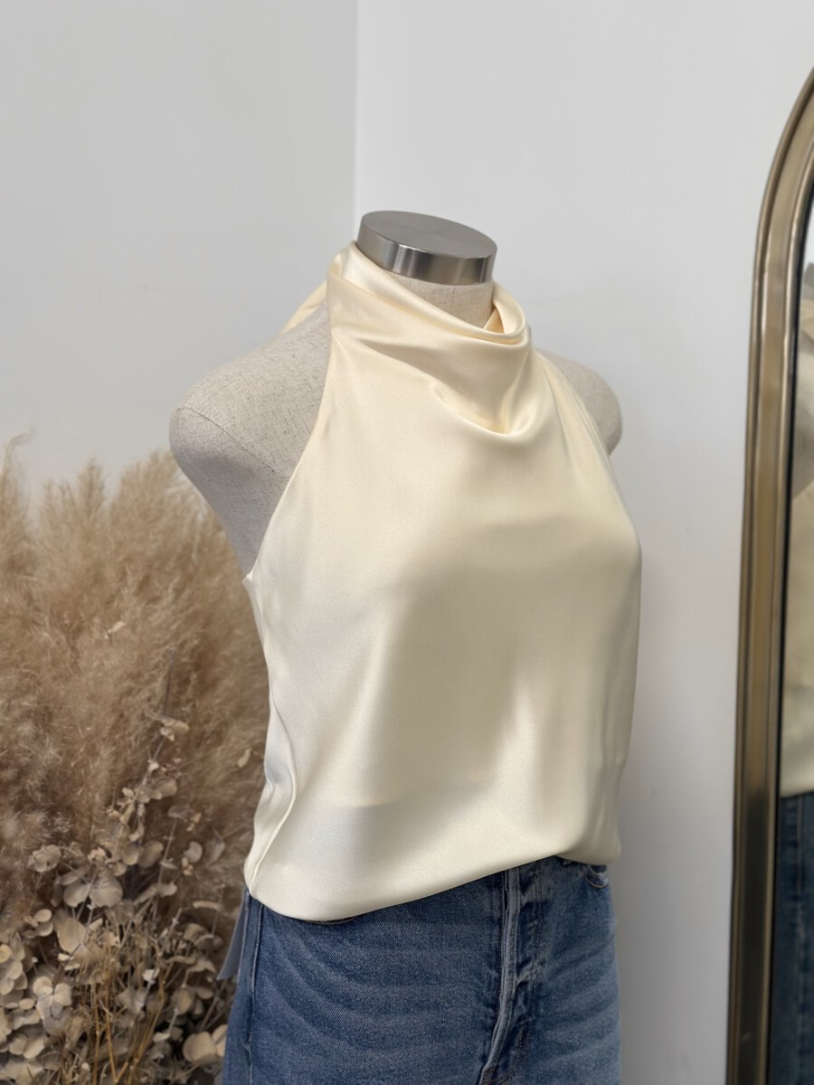 Be the first to review “” Marjorie ” Satin Halter Top ( Butter )” Cancel reply
