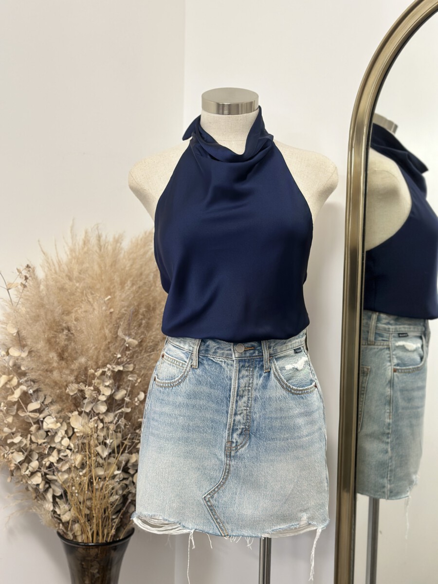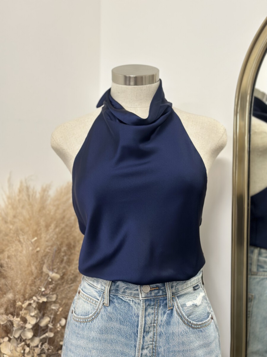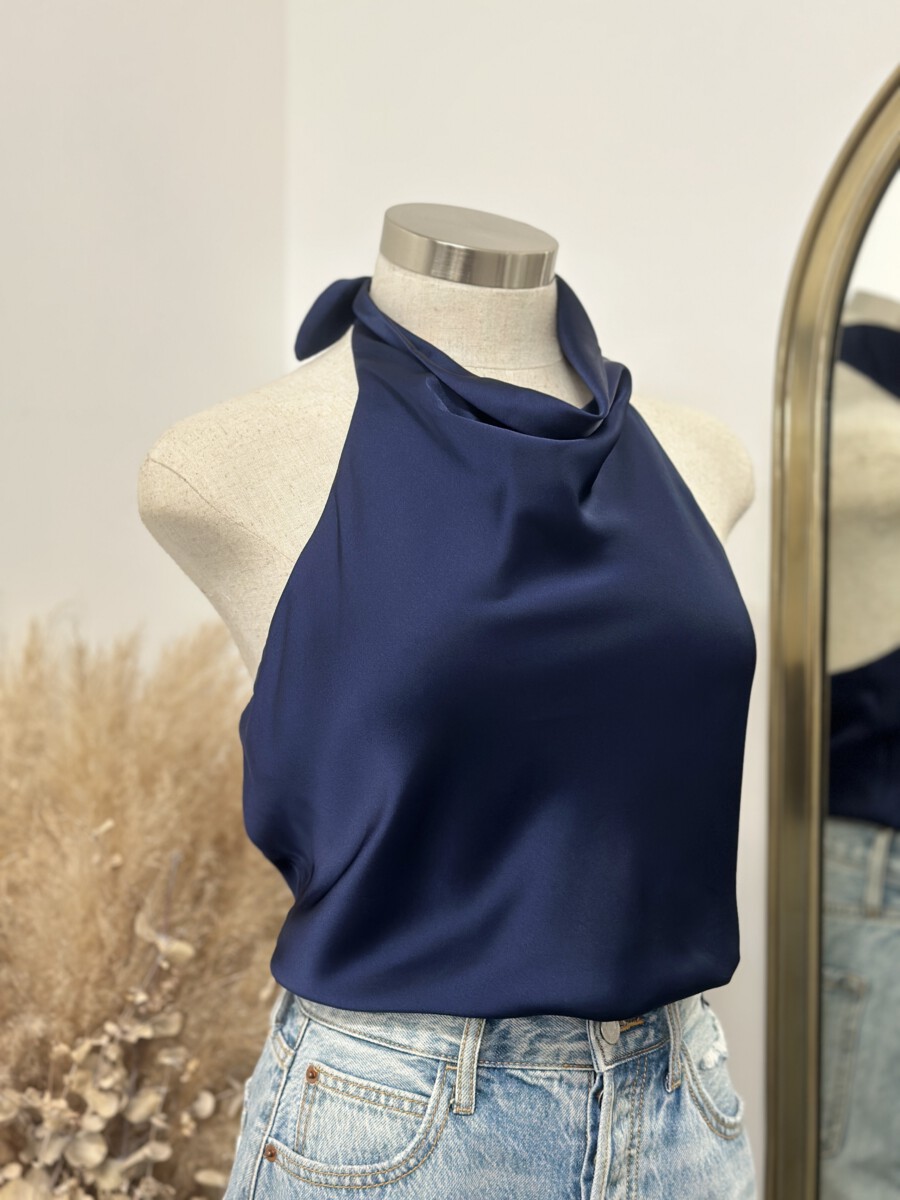 ” Marjorie ” Satin Halter Top ( Navy Blue )