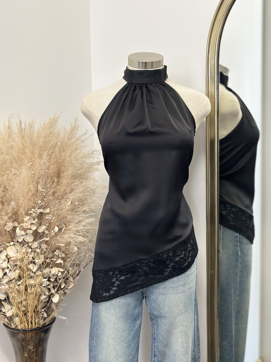 Be the first to review “” Micah ” Satin Lace Asymmetrical Top ( Black )” Cancel reply