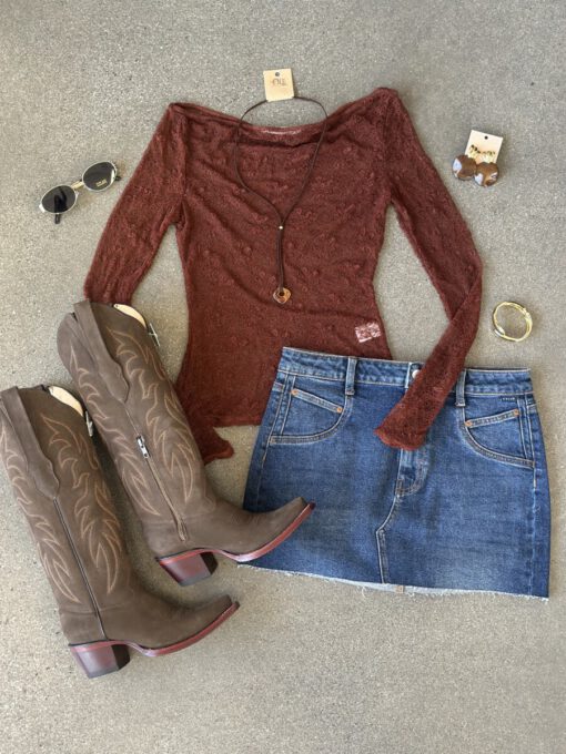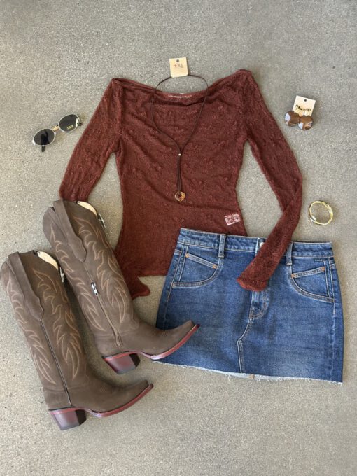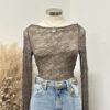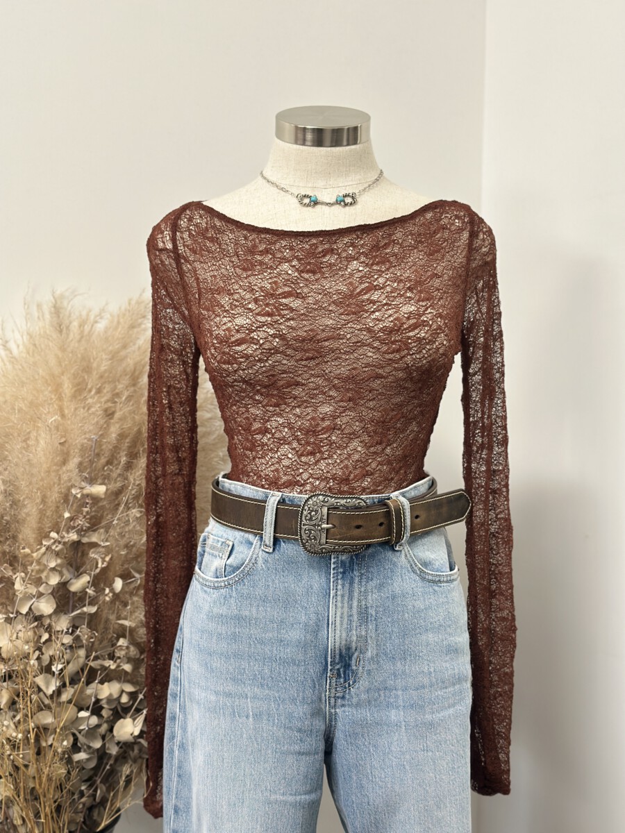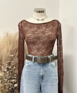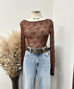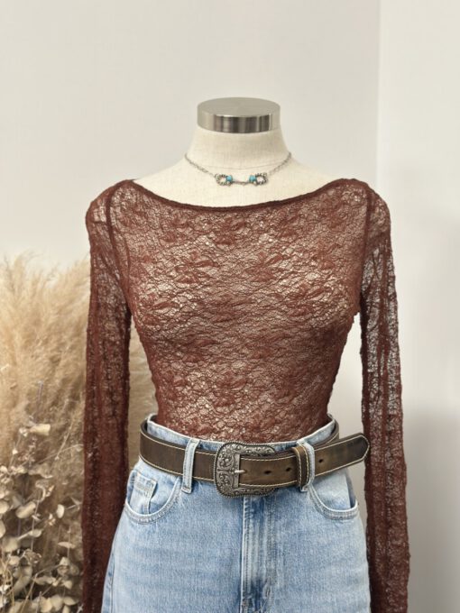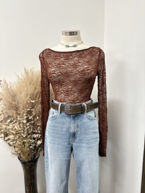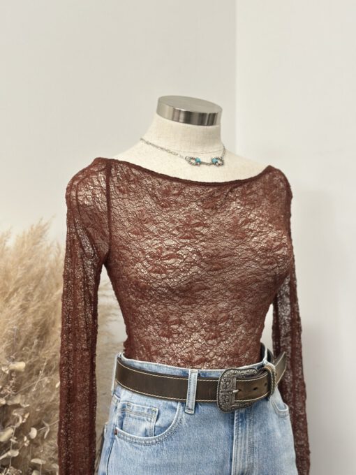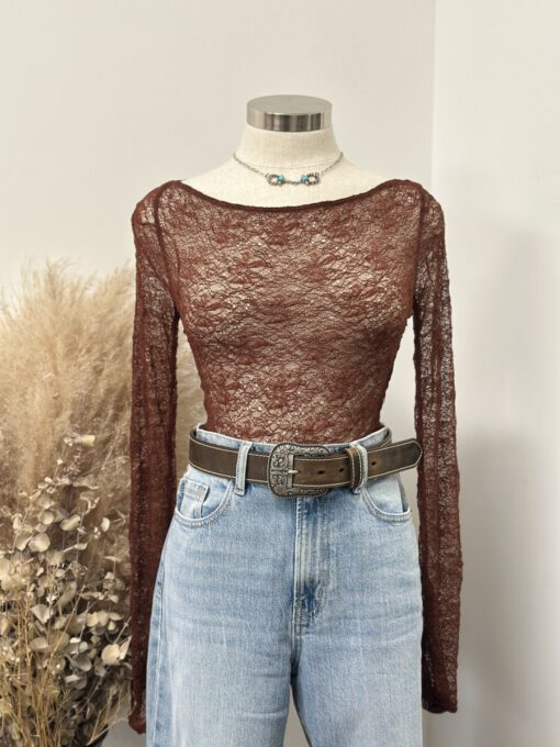 ” Mirelle ” Lace Long Sleeve Top ( Brown )