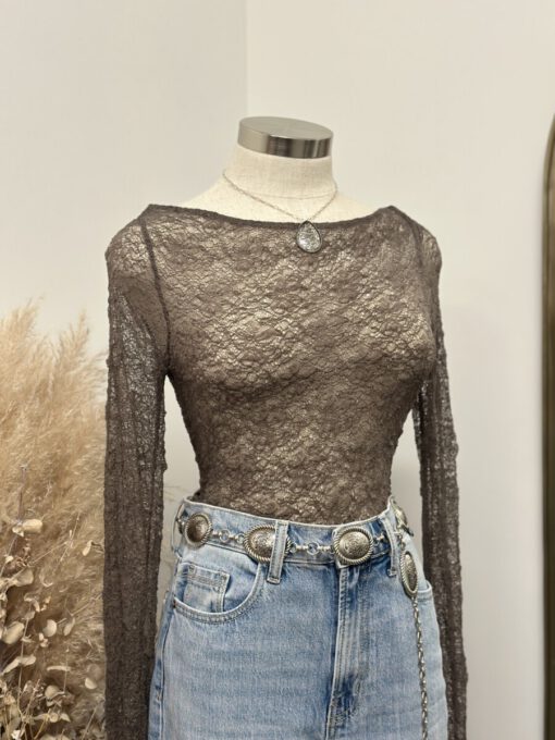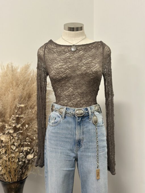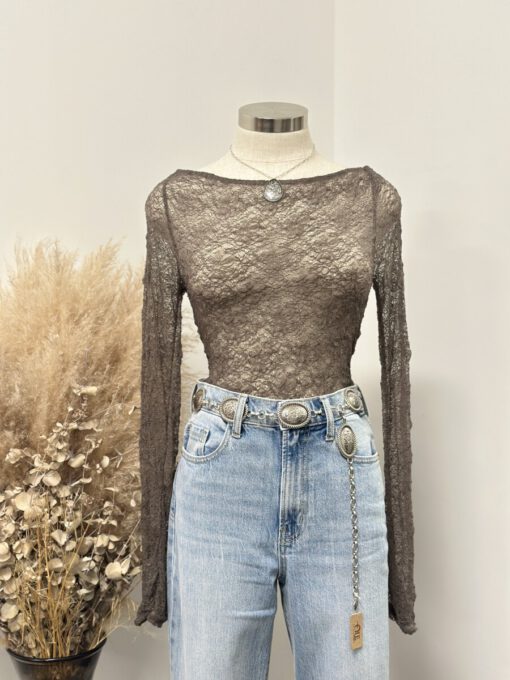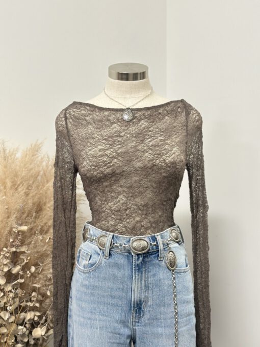 ” Mirelle ” Lace Long Sleeve Top ( Sage Grey )