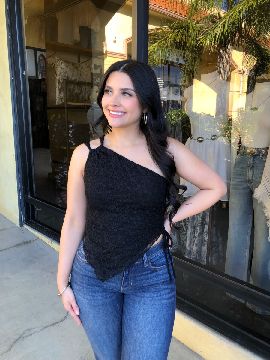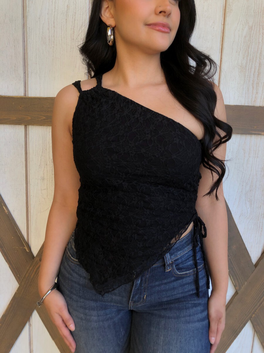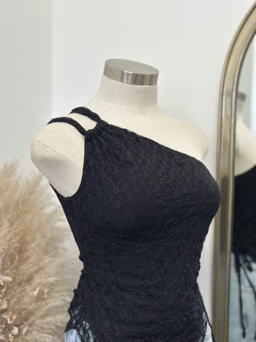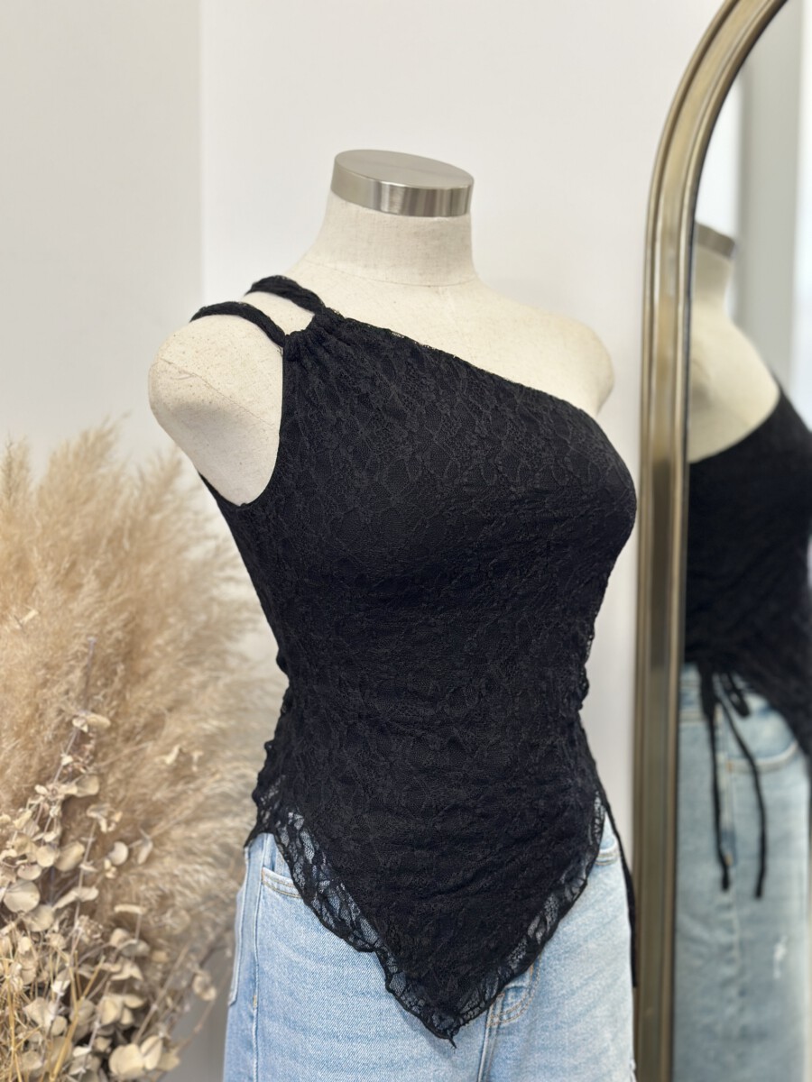 Be the first to review “” Nati ” Lace One Shoulder Top ( Black )” Cancel reply