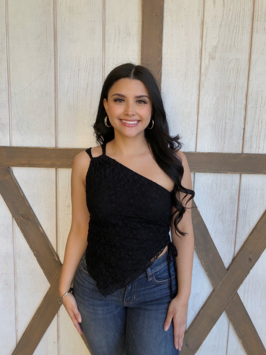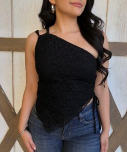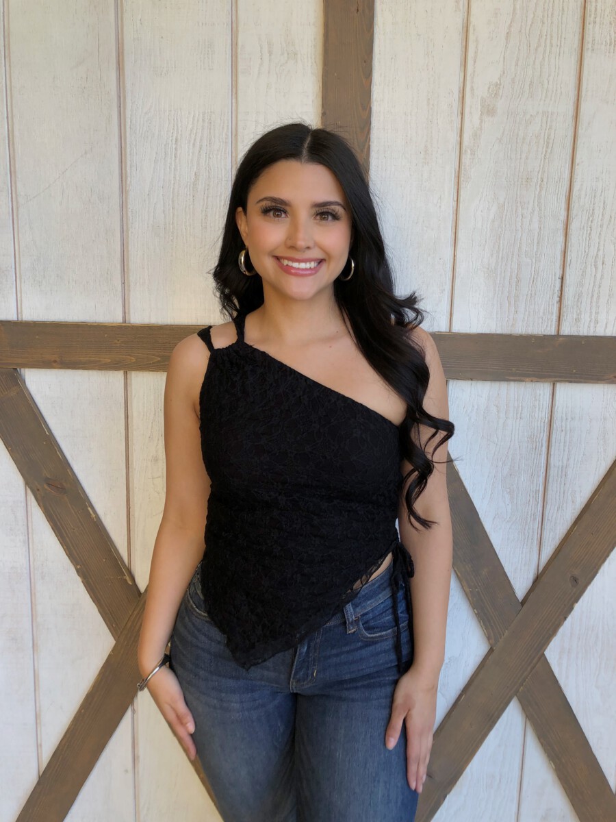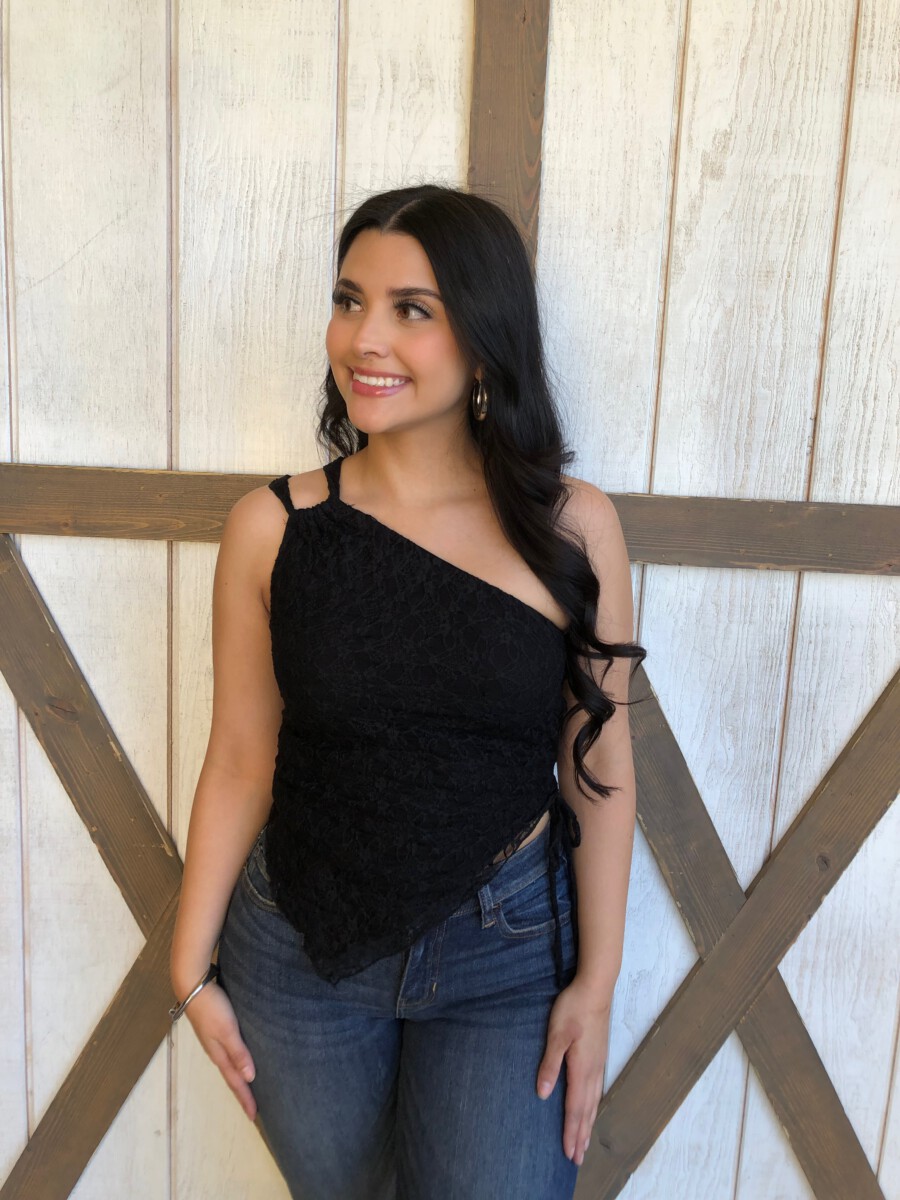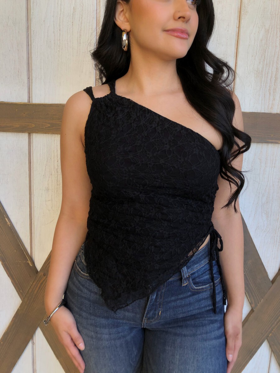 Be the first to review “” Nati ” Lace One Shoulder Top ( Black )” Cancel reply