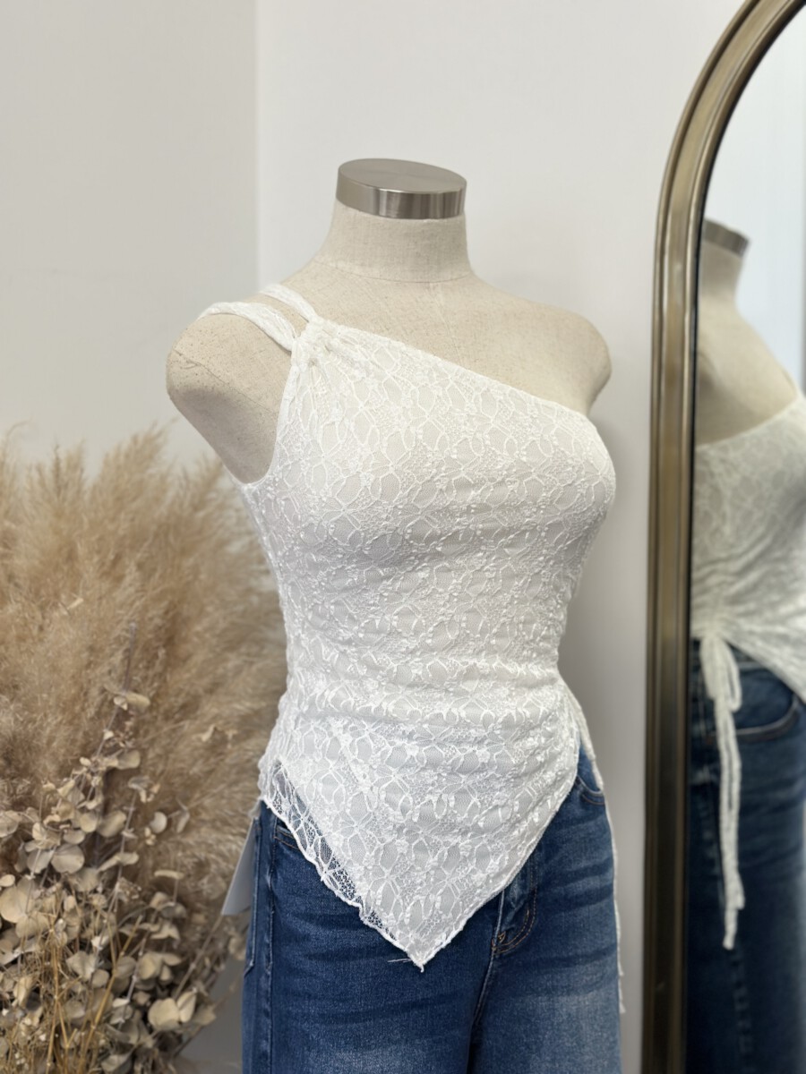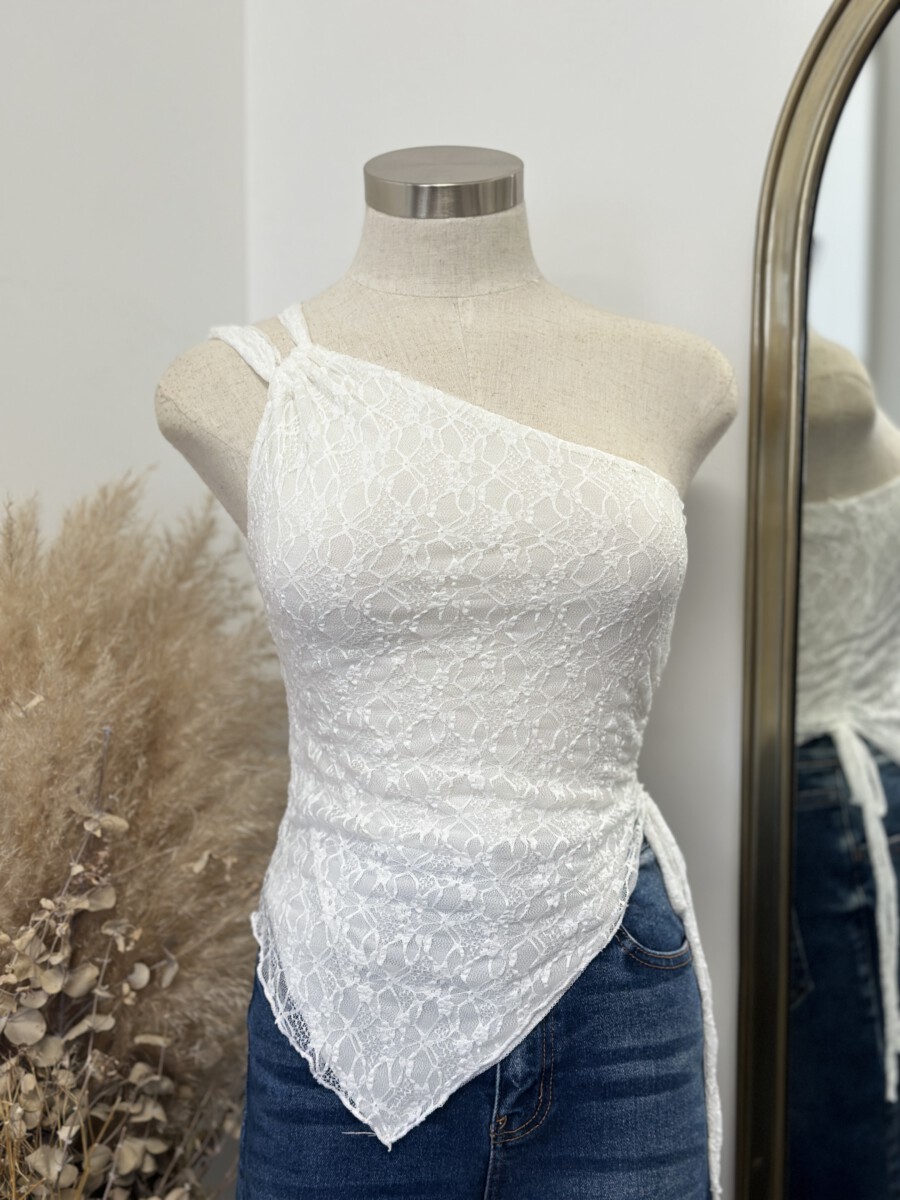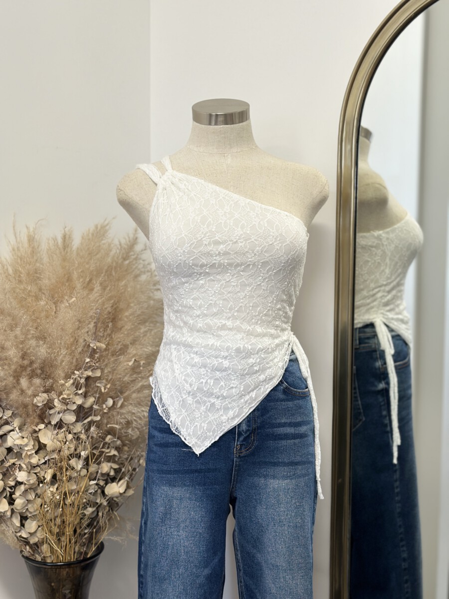 Be the first to review “” Nati ” Lace One Shoulder Top ( White )” Cancel reply