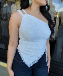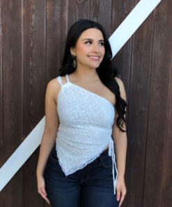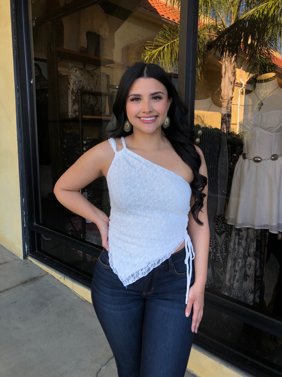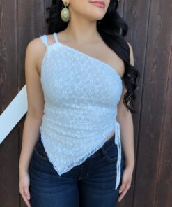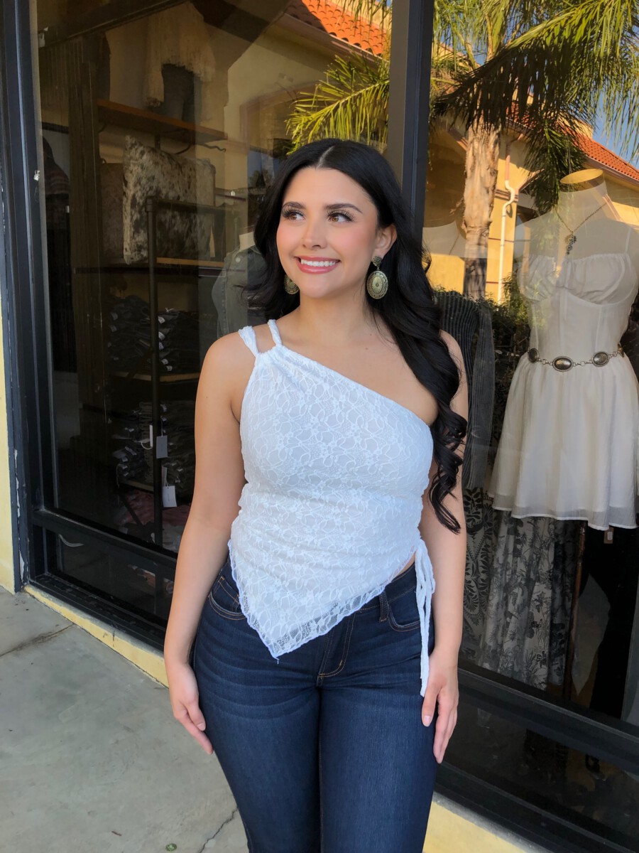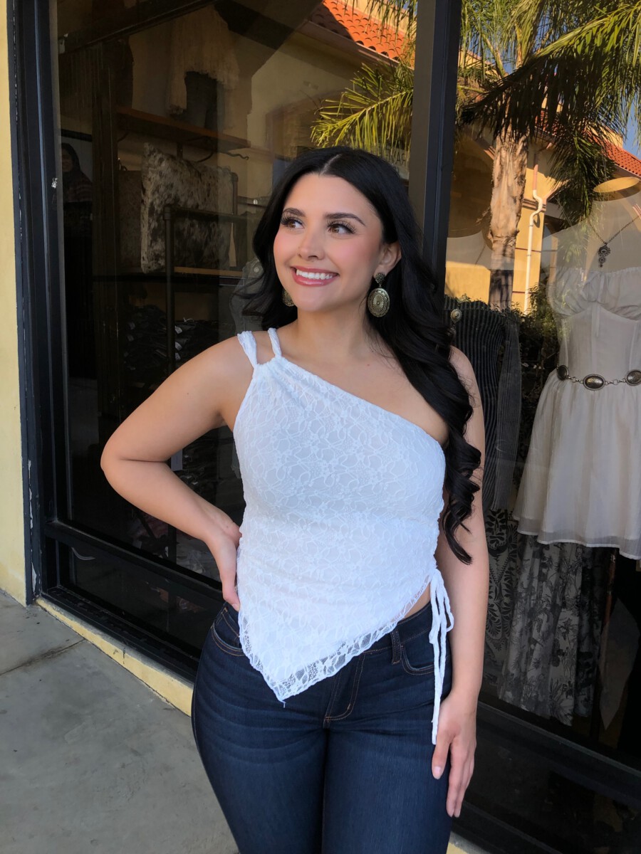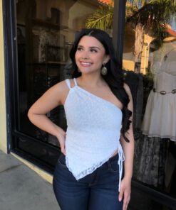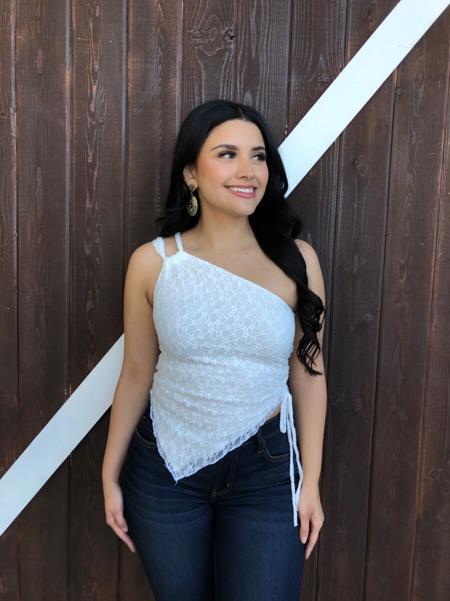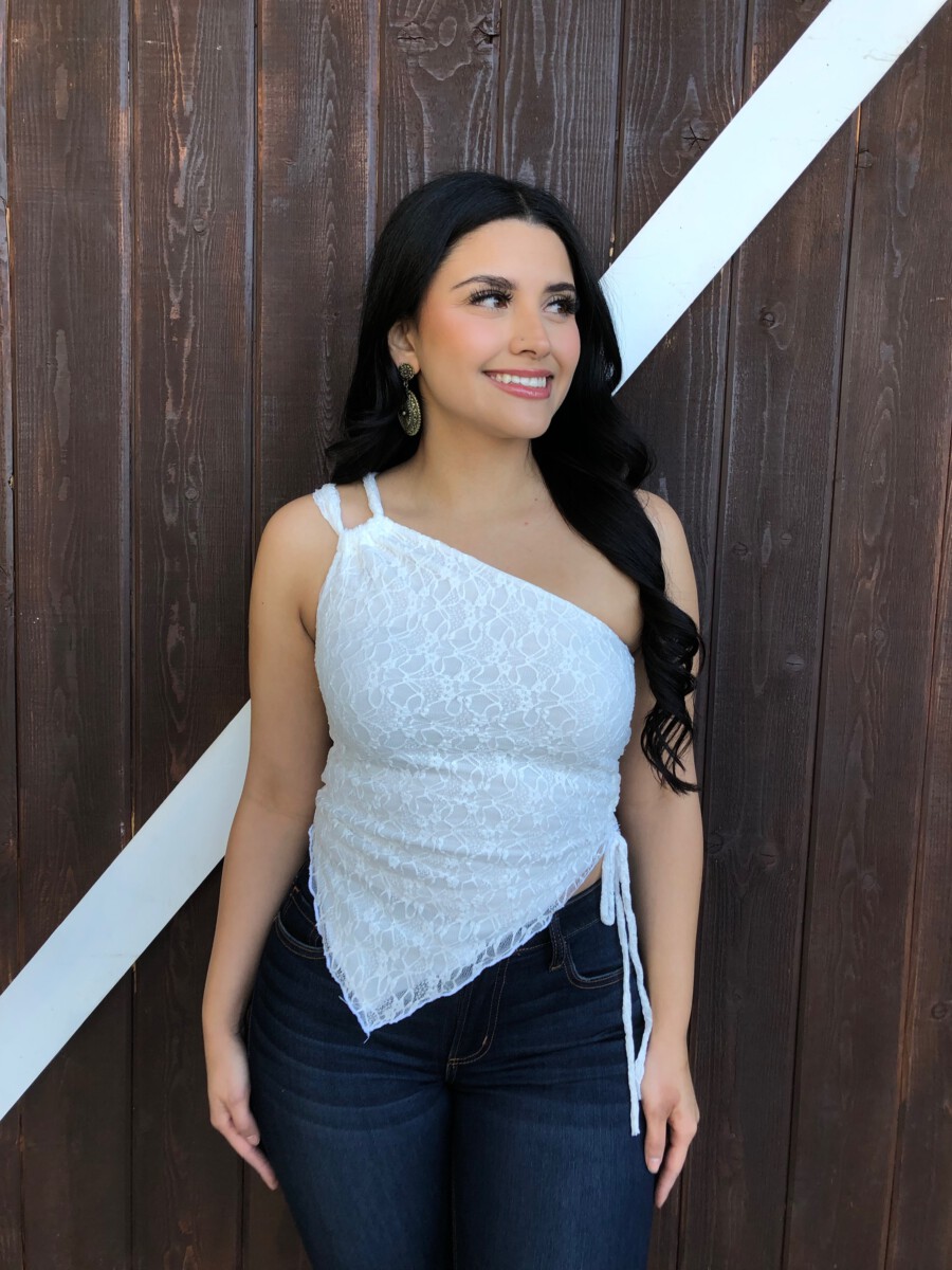 ” Nati ” Lace One Shoulder Top ( White )