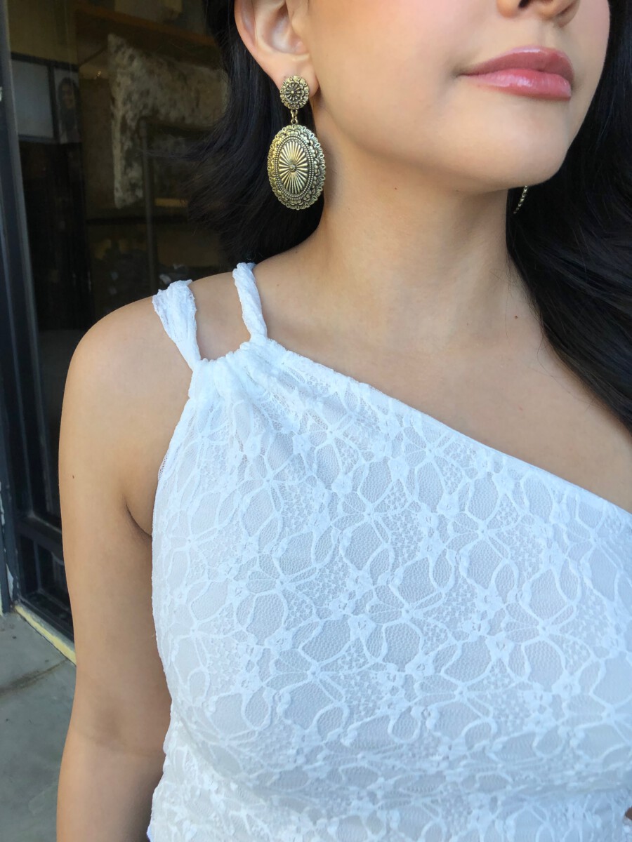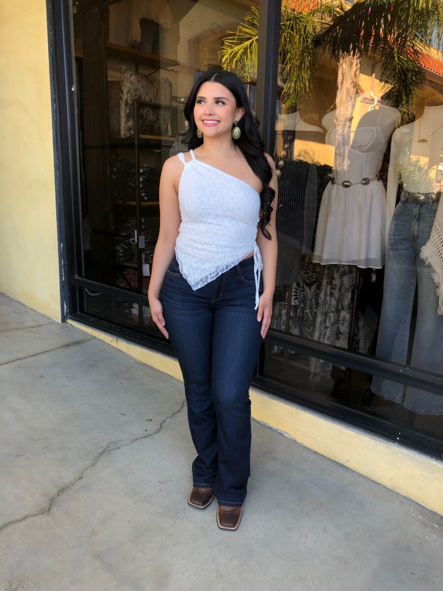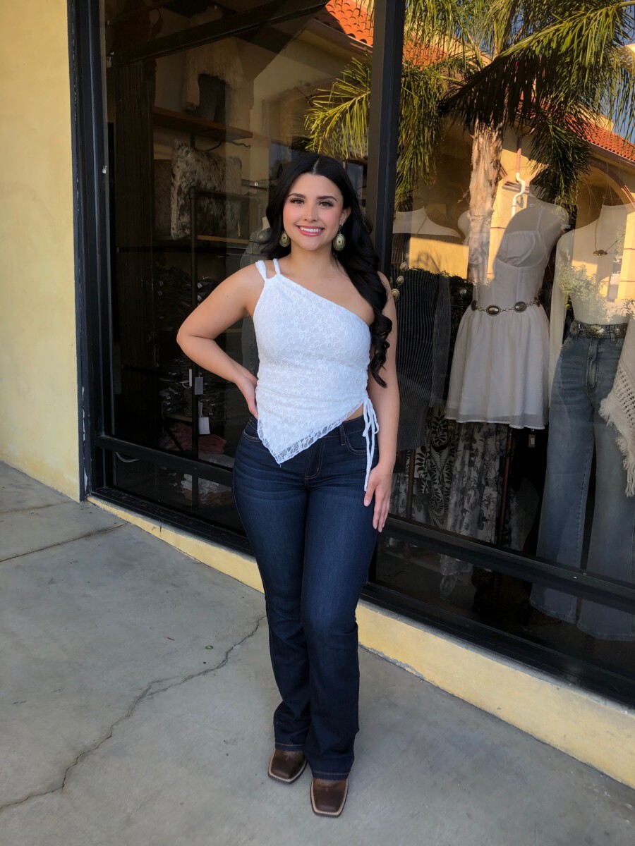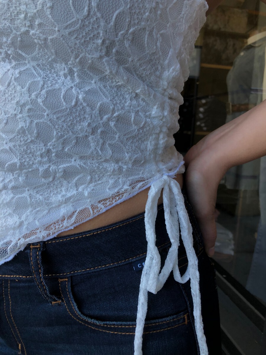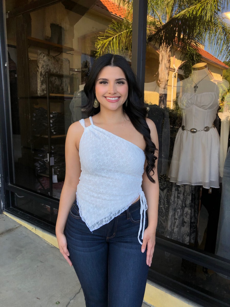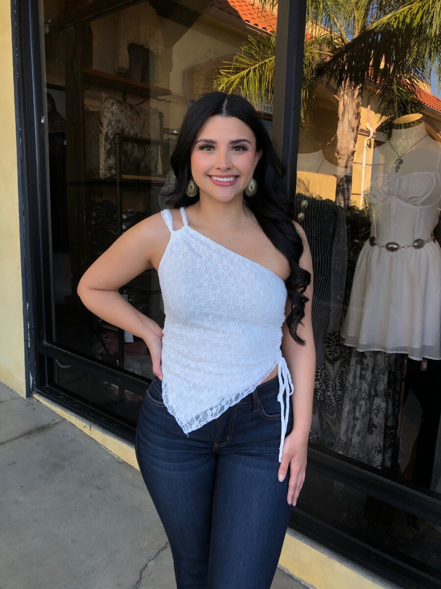 ” Nati ” Lace One Shoulder Top ( White )