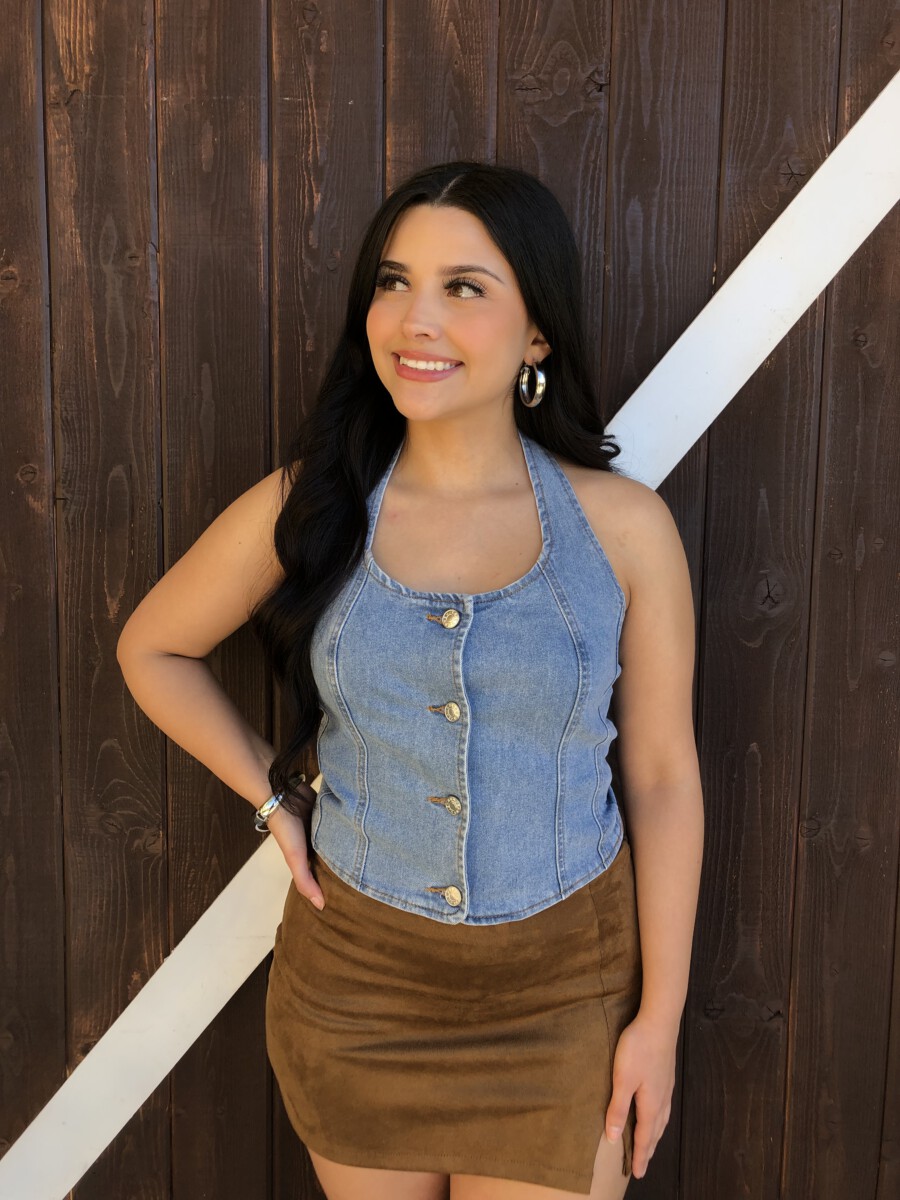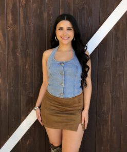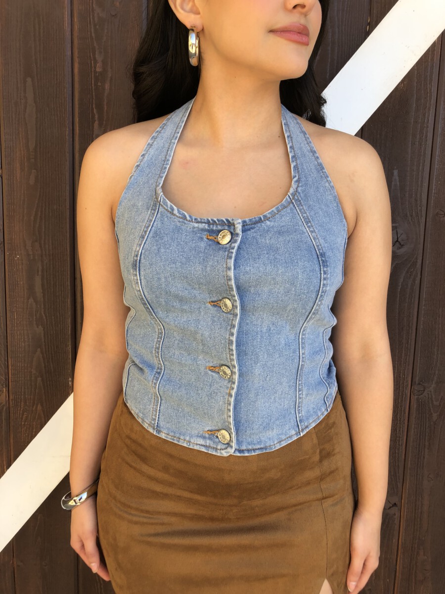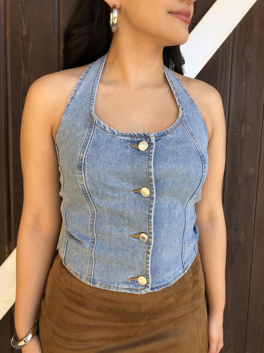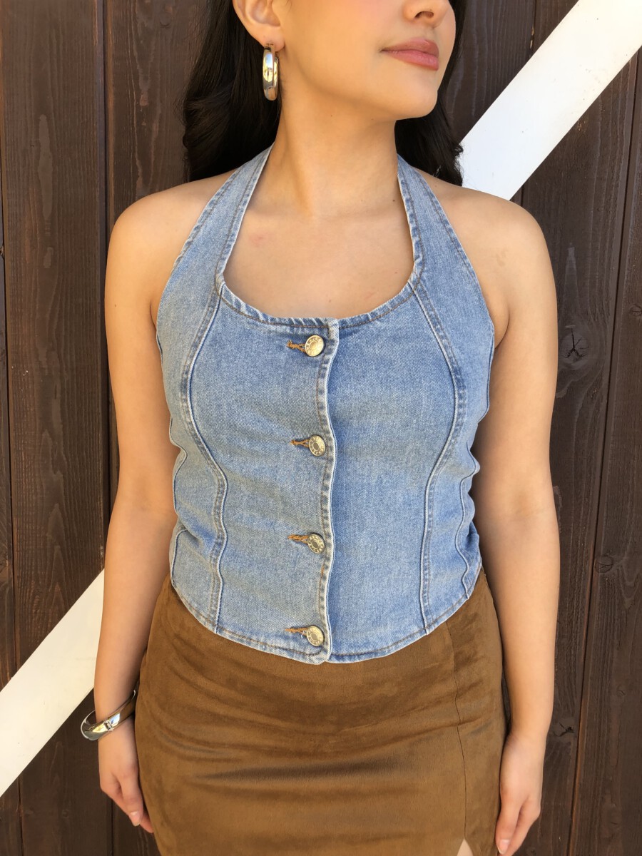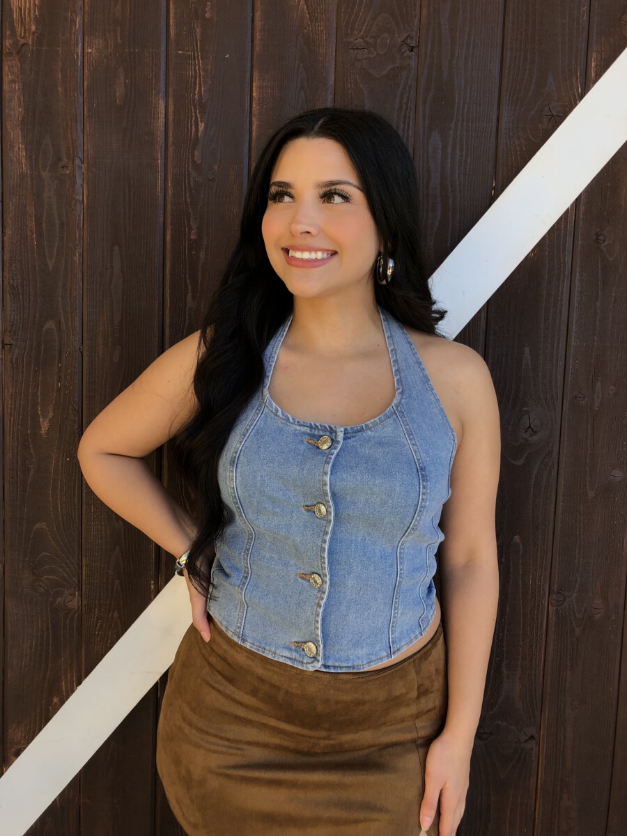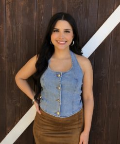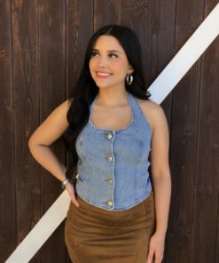 ” Nylah” Halter Denim Top ( Medium Blue )