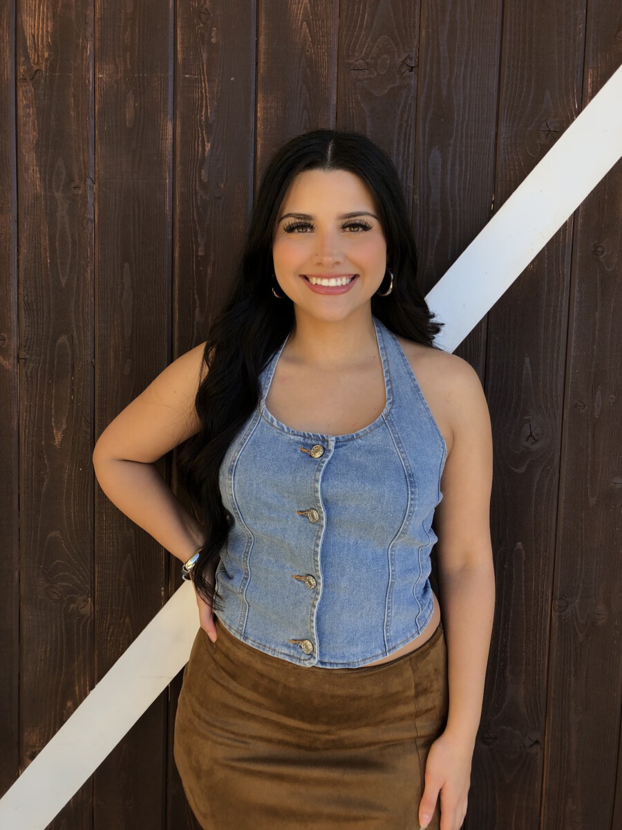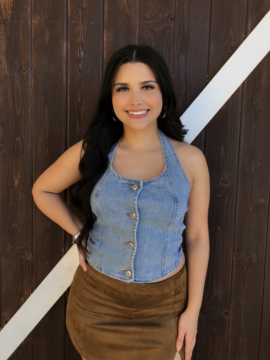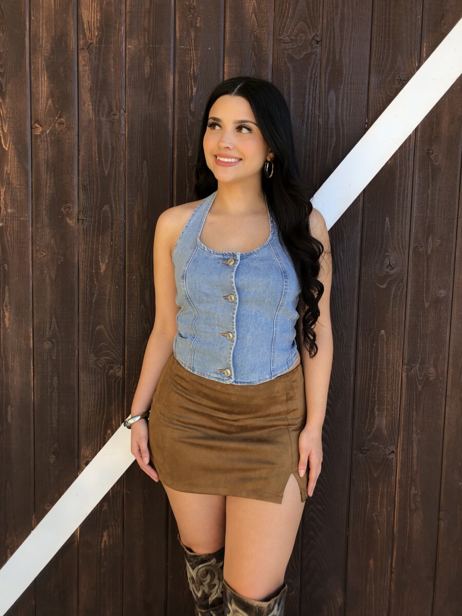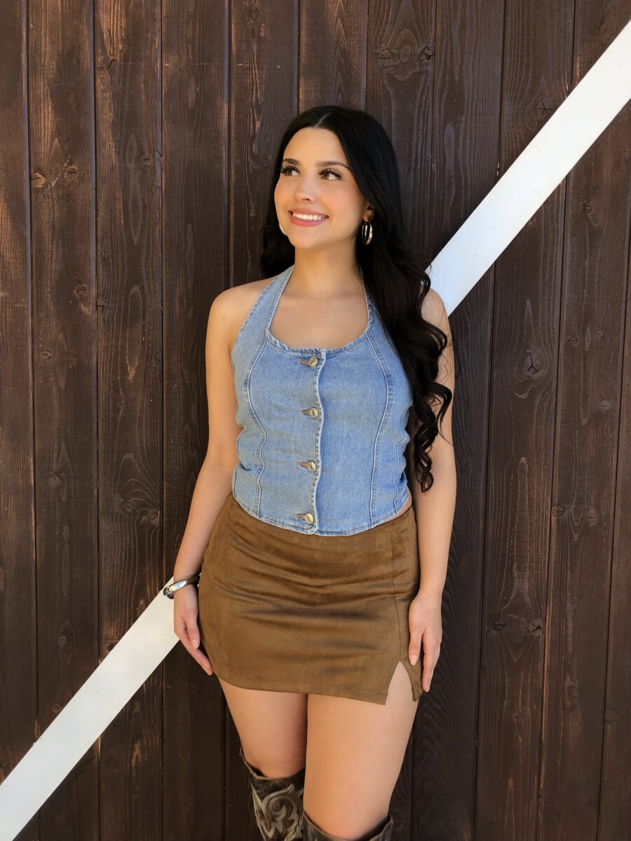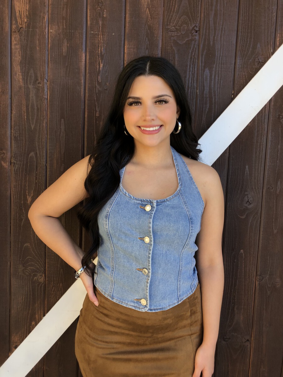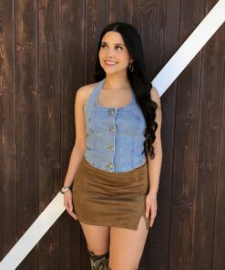 ” Nylah” Halter Denim Top ( Medium Blue )