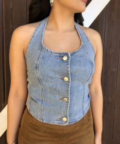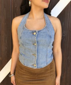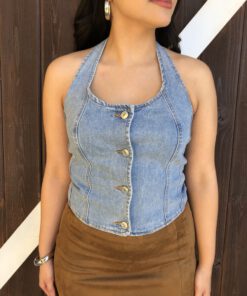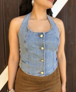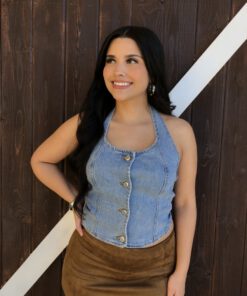 Be the first to review “” Nylah” Halter Denim Top ( Medium Blue )” Cancel reply