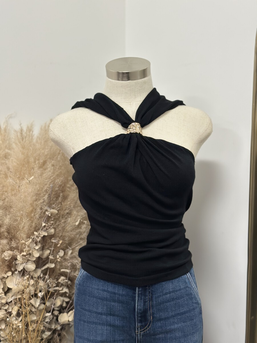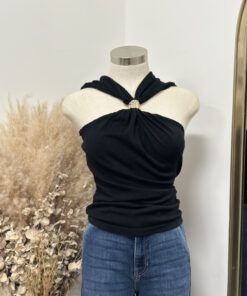 Be the first to review “” Nyra ” Trim Ruched Cf Slvless Knit Top ( Black )” Cancel reply