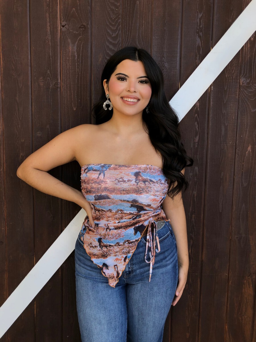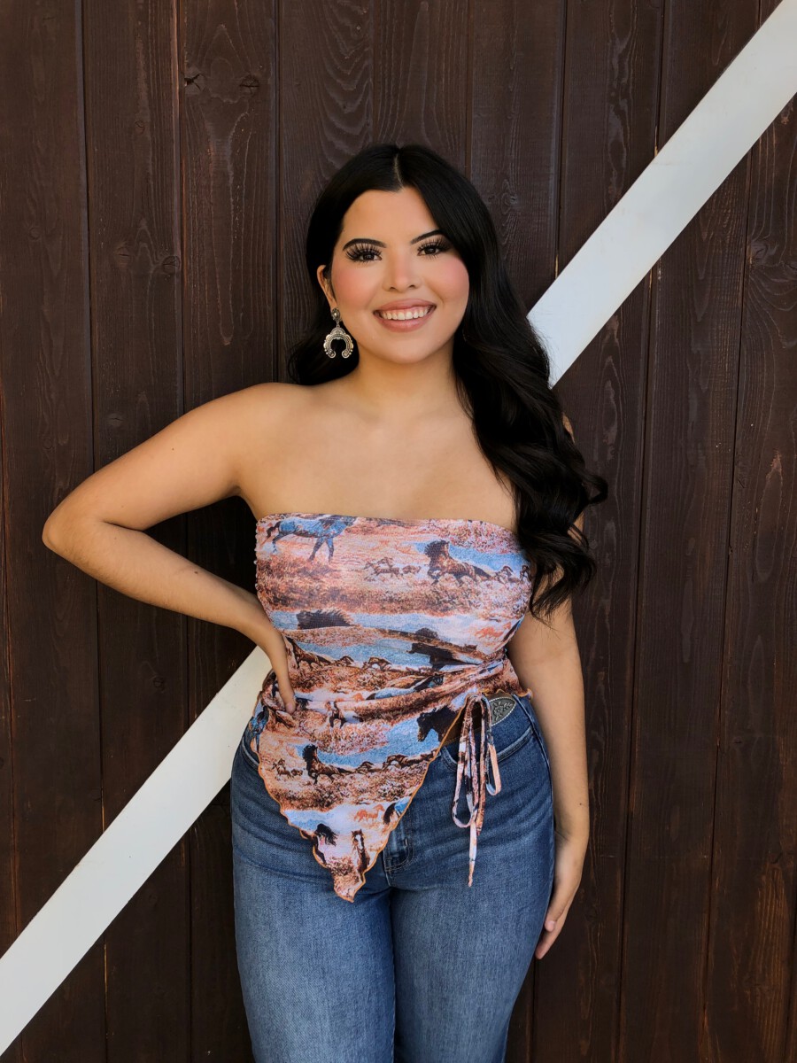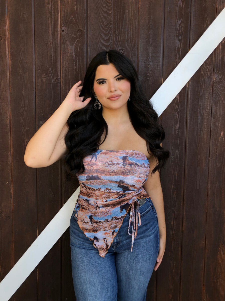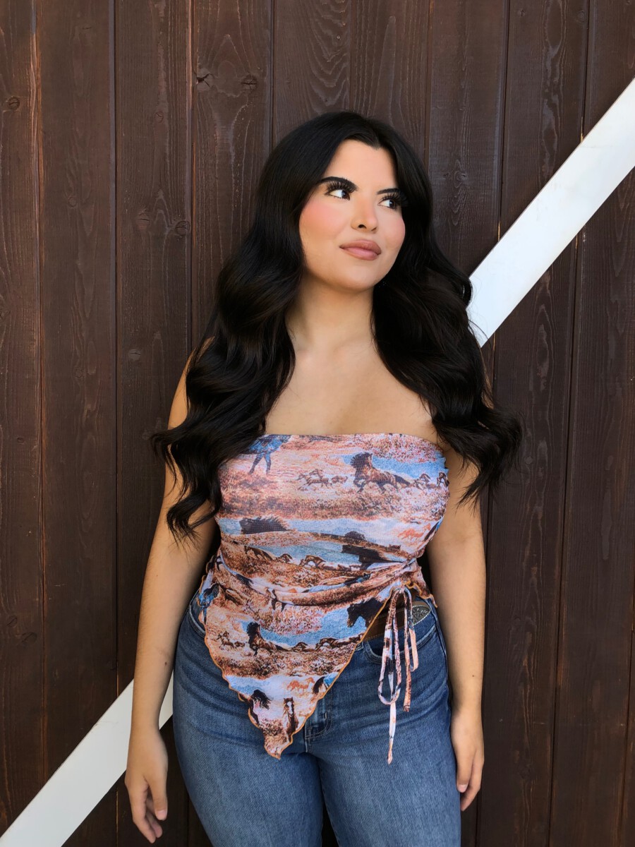 Be the first to review “” Rodeo Girl “Western Mesh Tube Ruched Top” Cancel reply