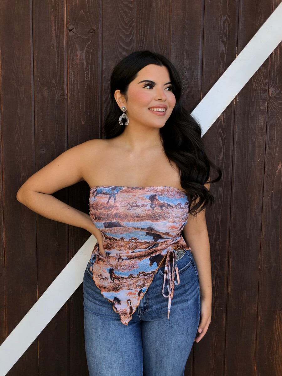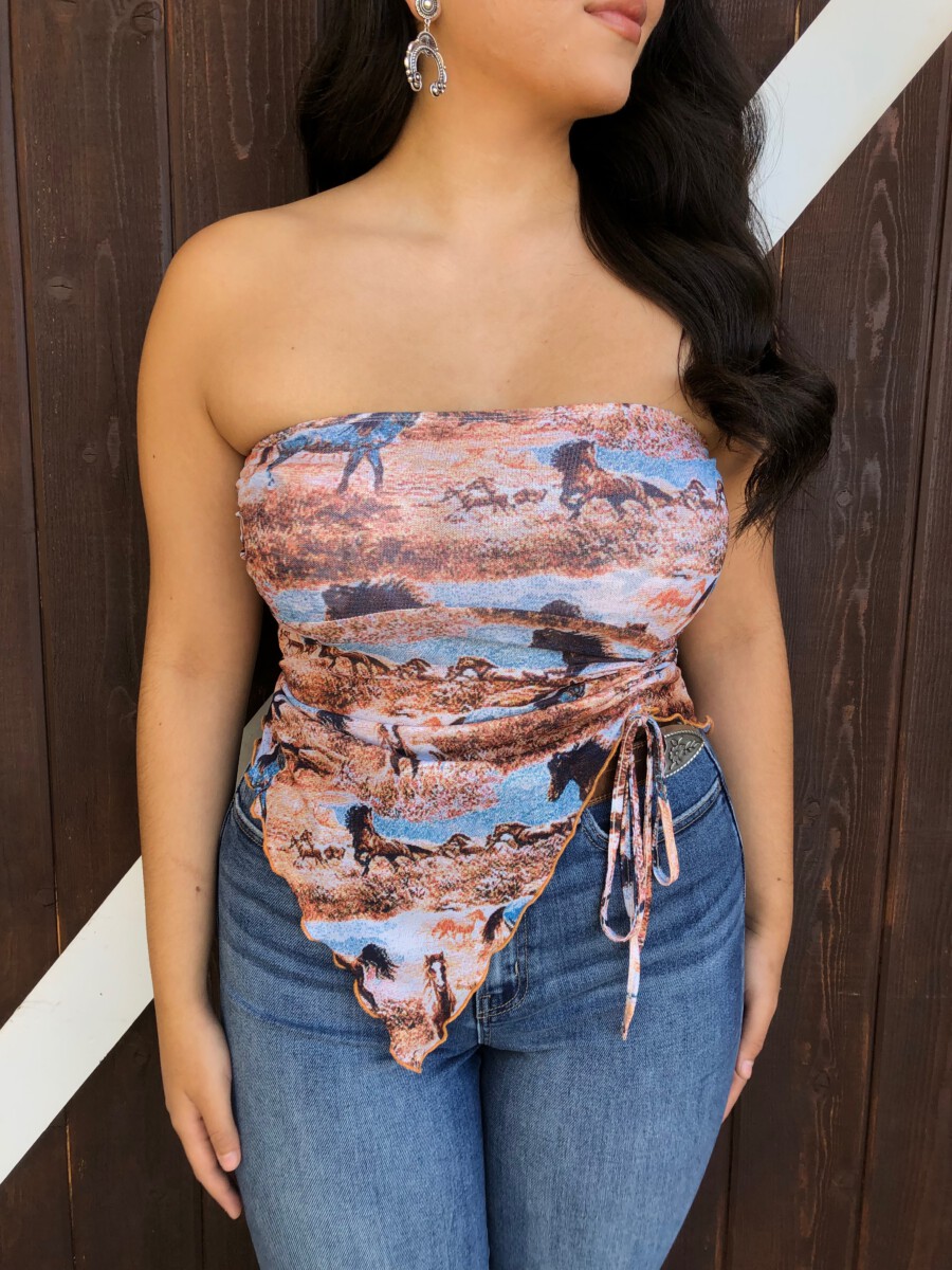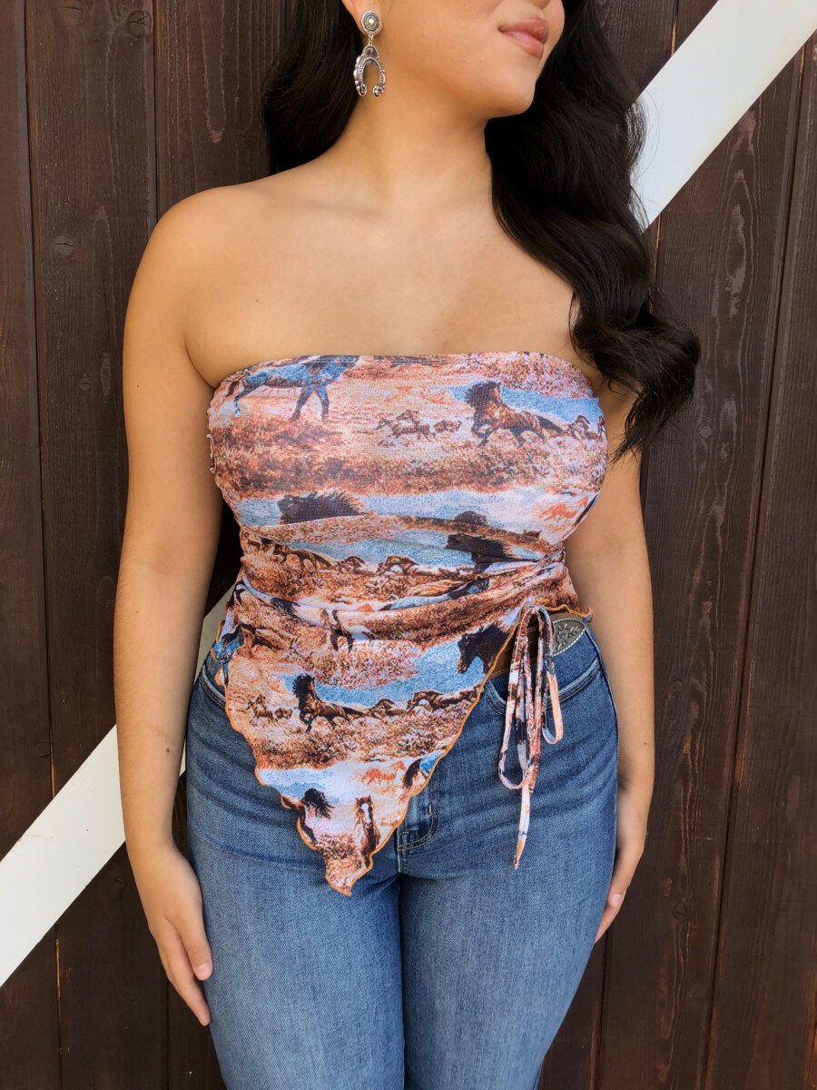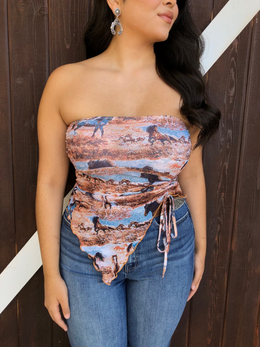 Be the first to review “” Rodeo Girl “Western Mesh Tube Ruched Top” Cancel reply