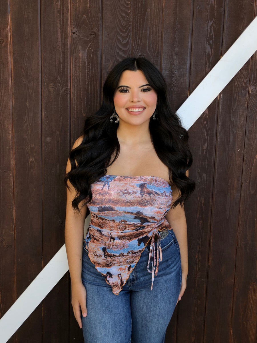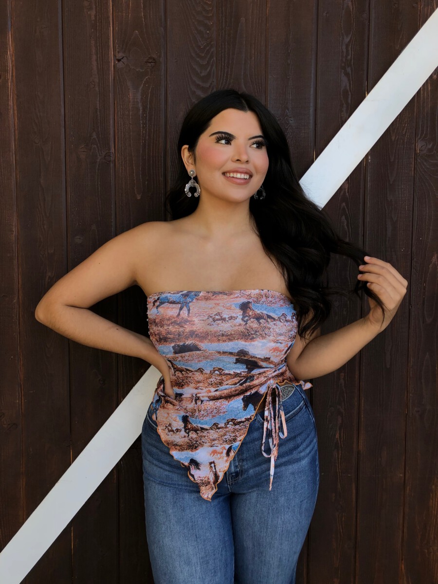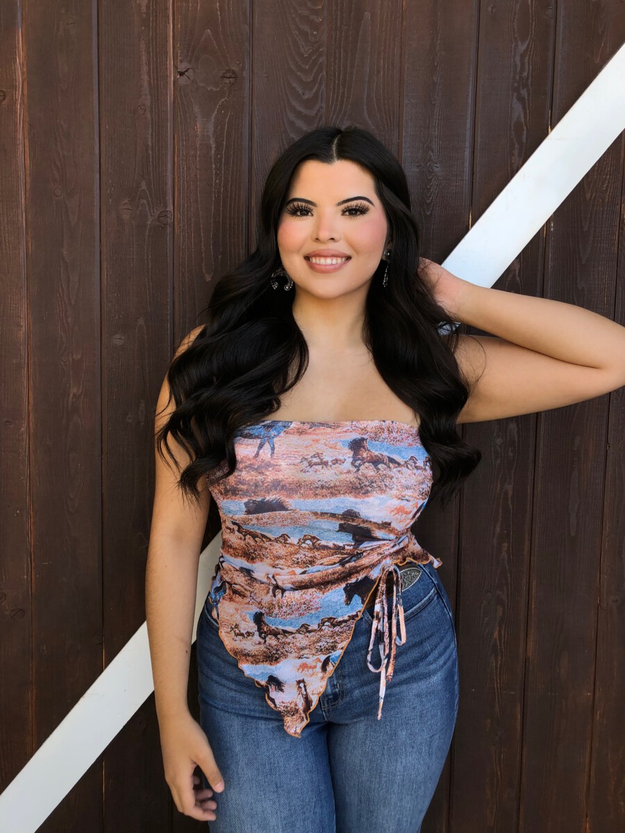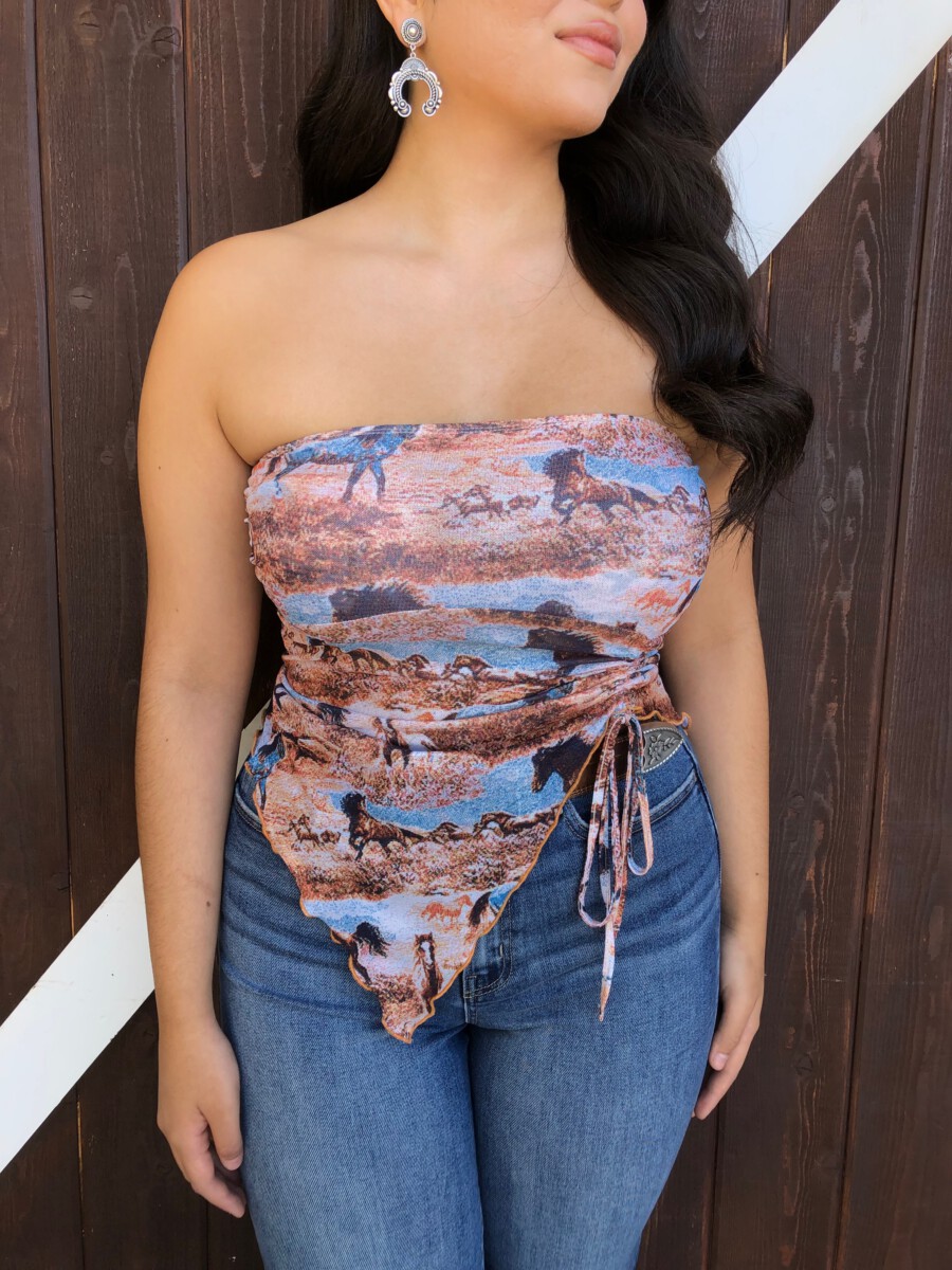 ” Rodeo Girl “Western Mesh Tube Ruched Top